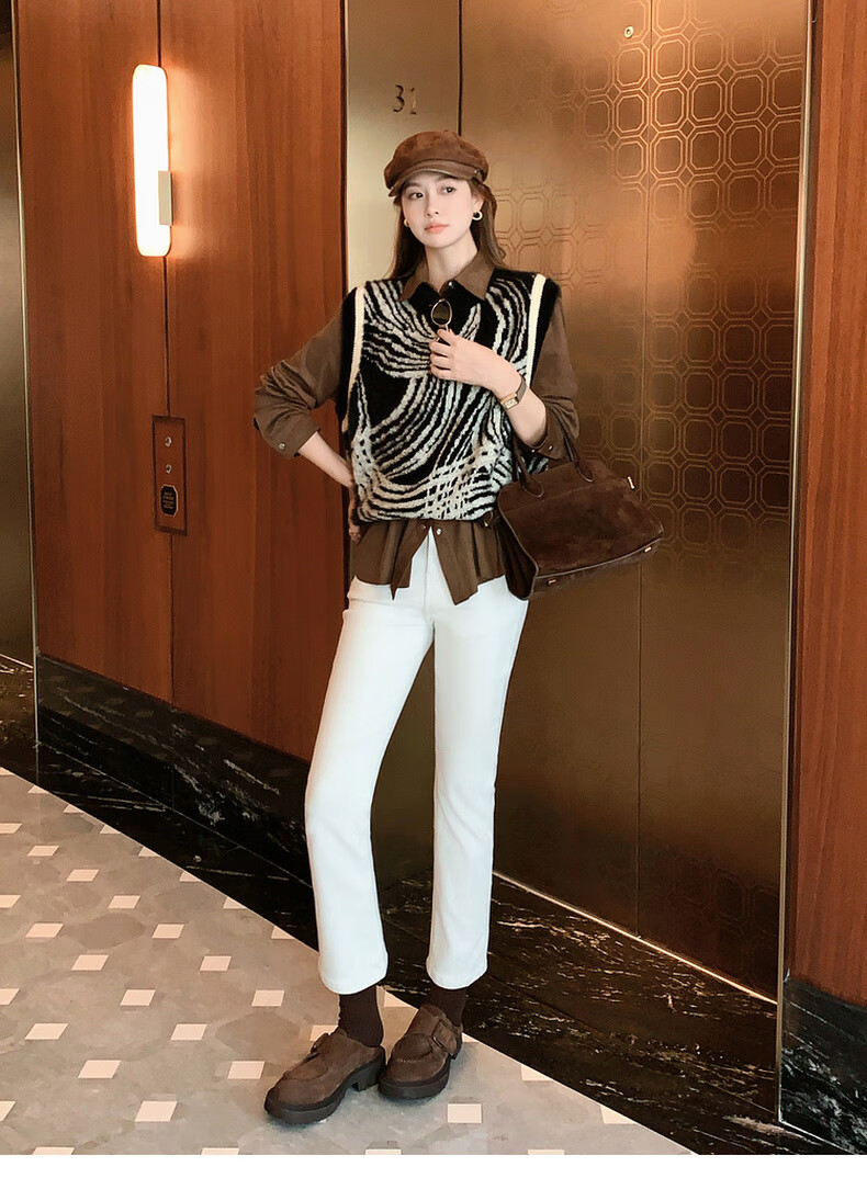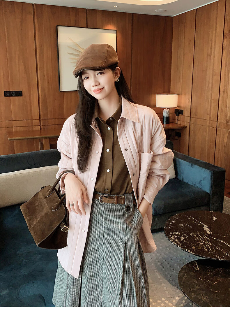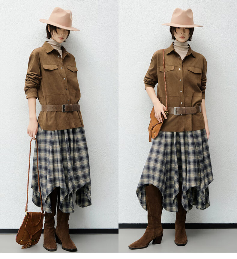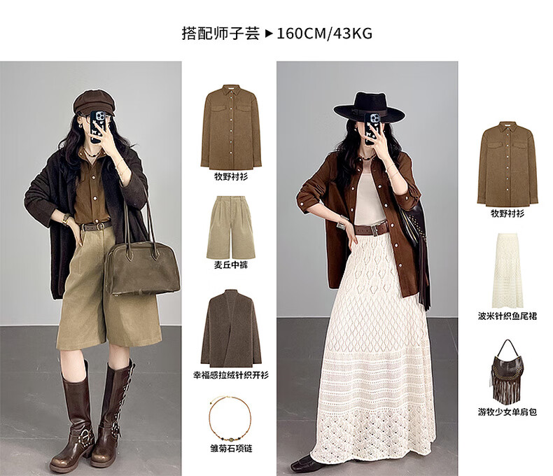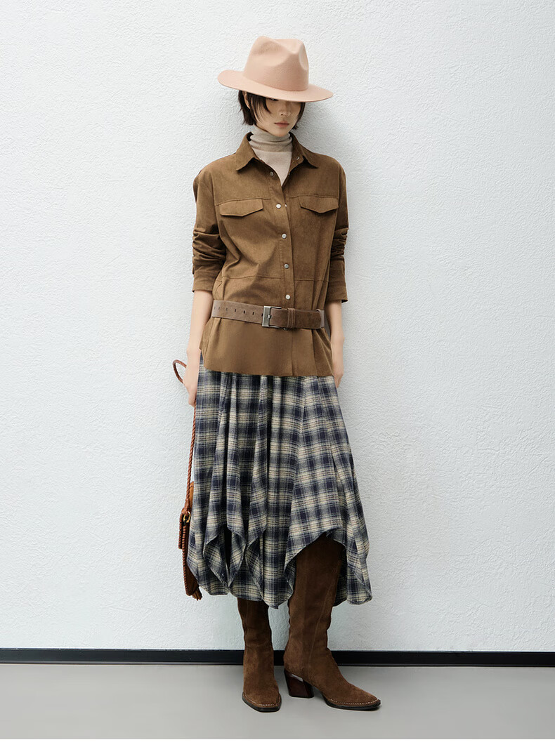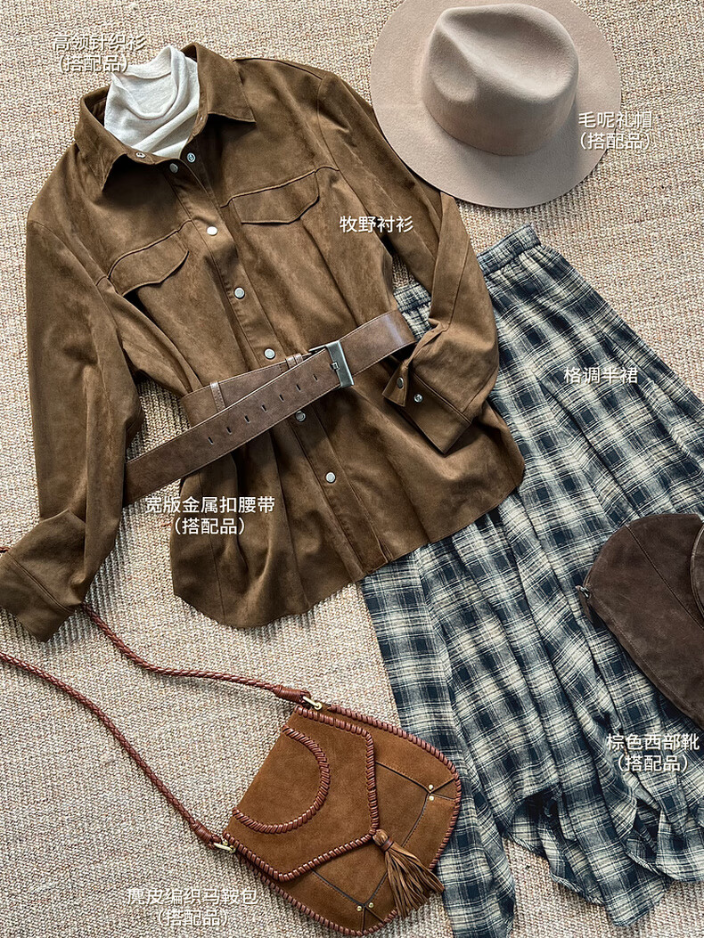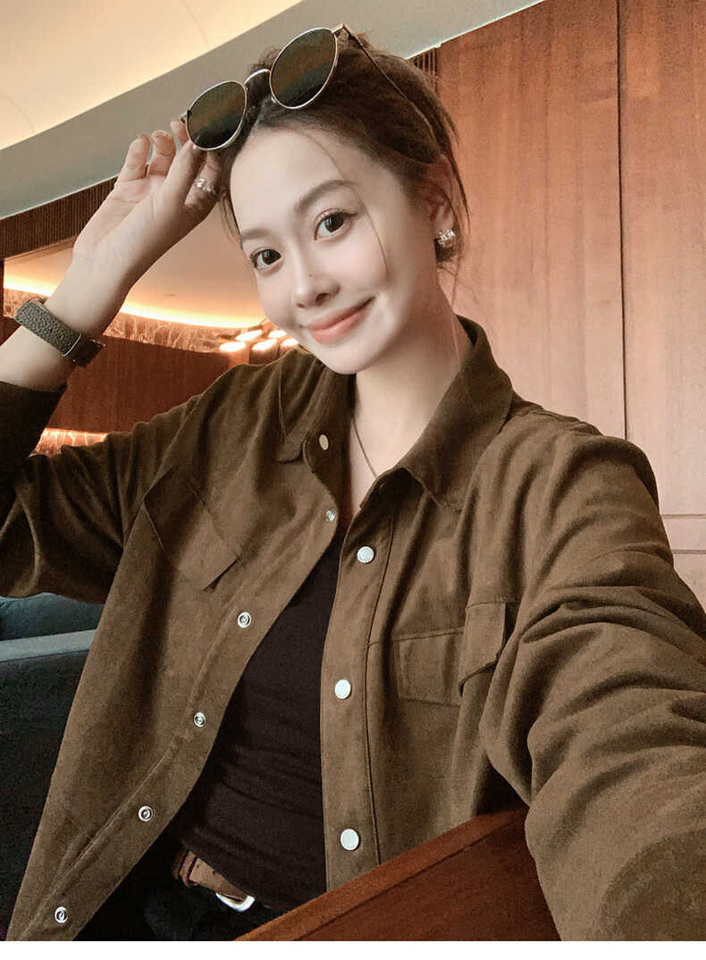 MEIYANG Makino Shirt Amber Streamer Mist Suede Lapel Button-Down Shirt Loose Fashionable Winter New Style Camel M