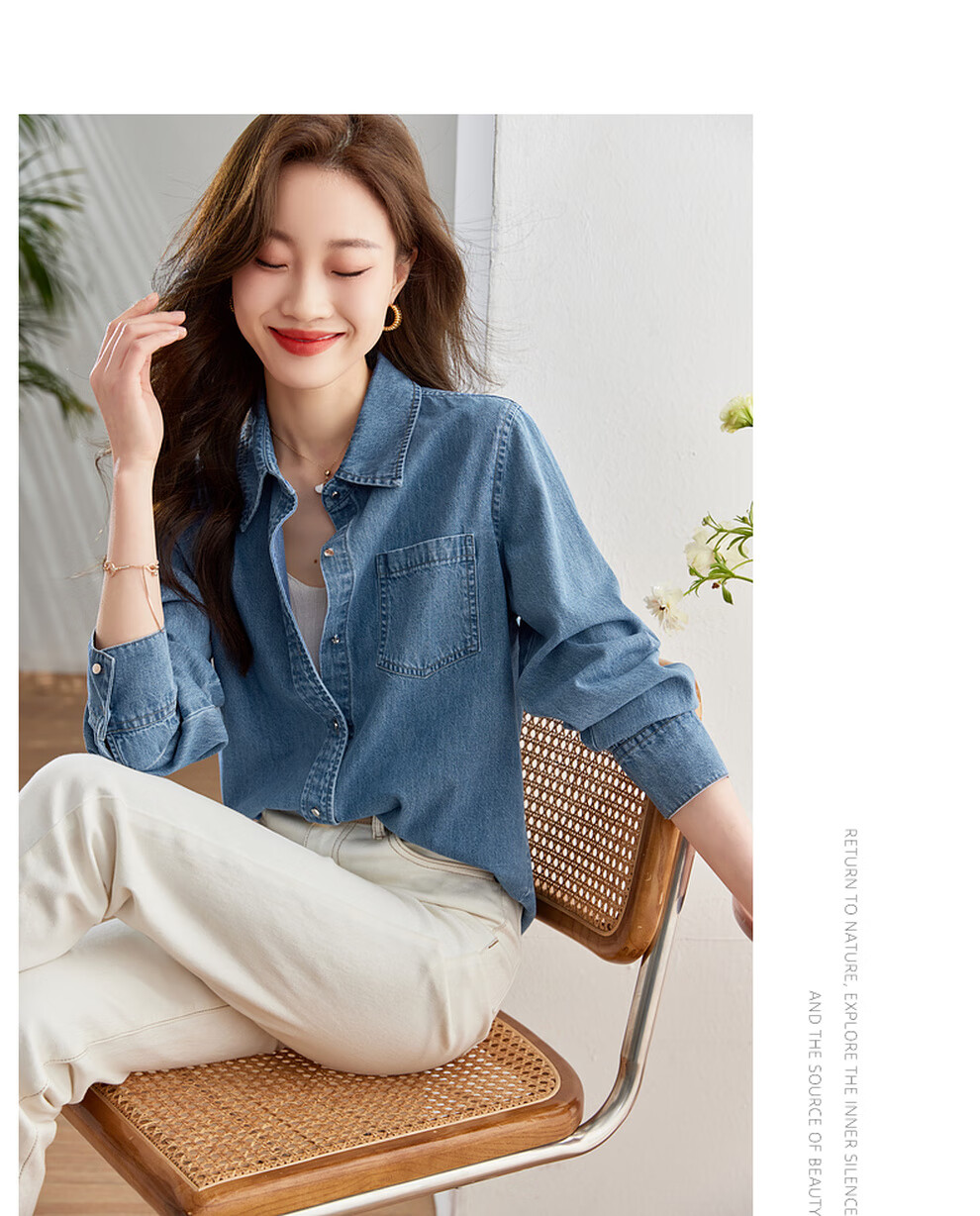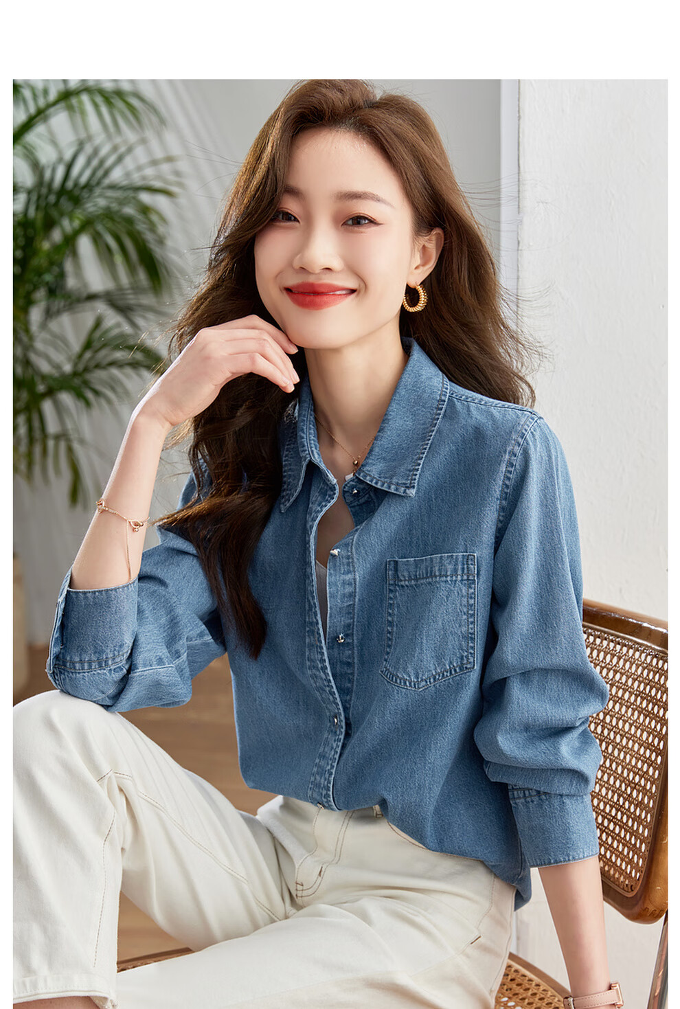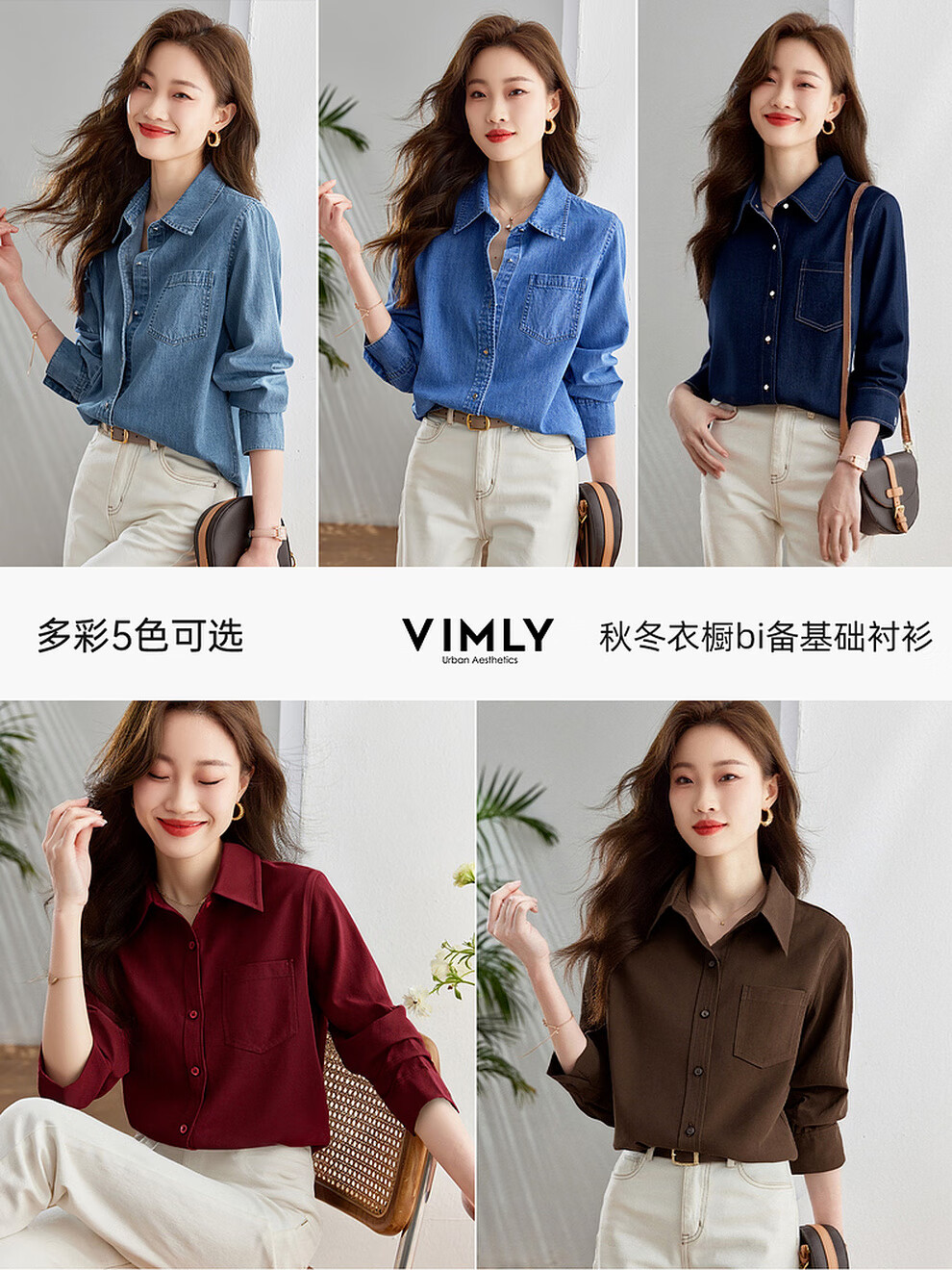 Fanximan dark blue American retro denim shirt women's 25th autumn new loose versatile lapel long-sleeved jacket V8780 denim blue L (recommended 110-120 Jin Jin equals 0.5 kg)