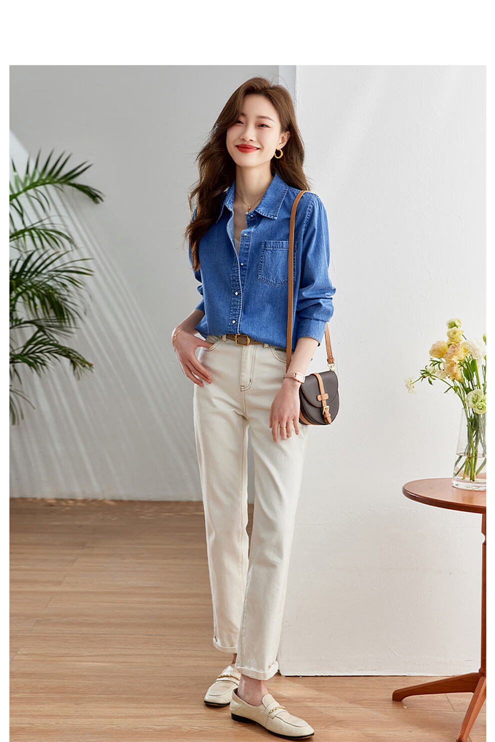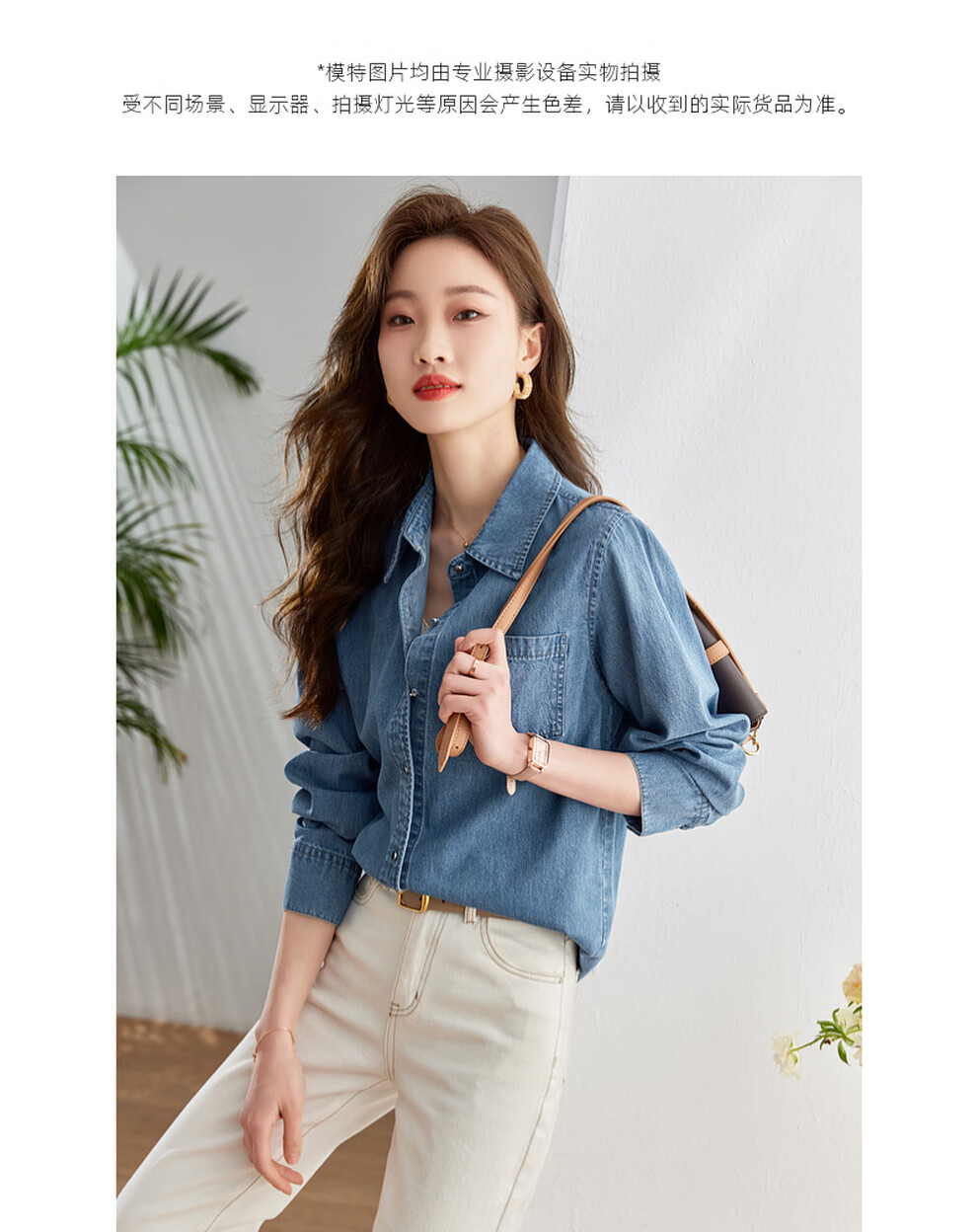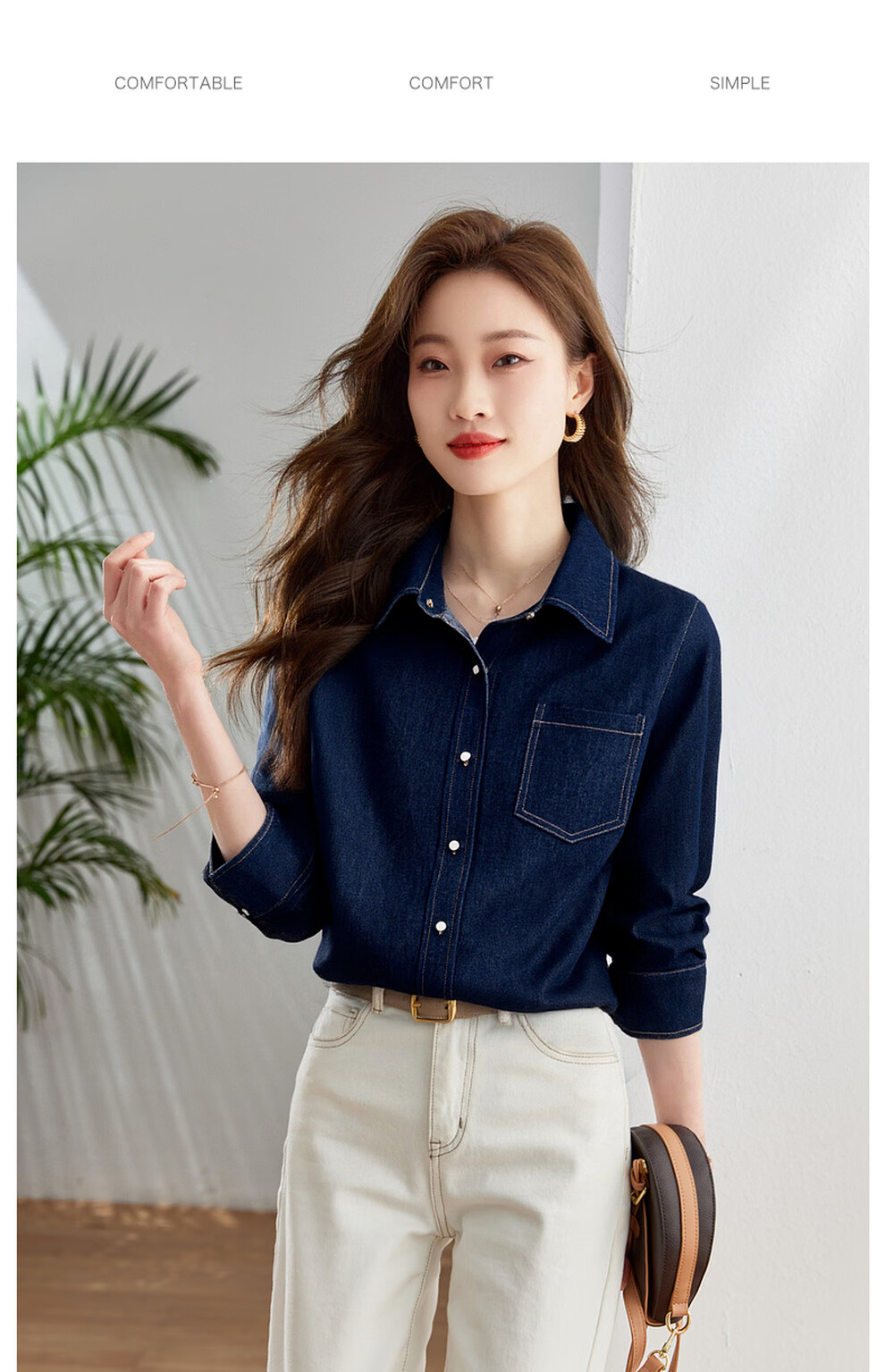 Fanximan dark blue American retro denim shirt women's 25th autumn new loose versatile lapel long-sleeved jacket V8780 denim blue L (recommended 110-120 Jin Jin equals 0.5 kg)