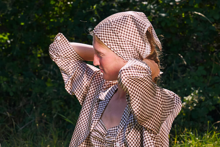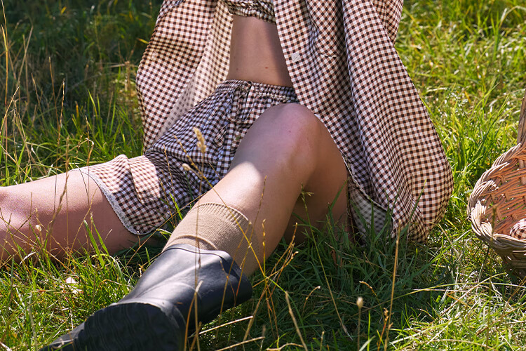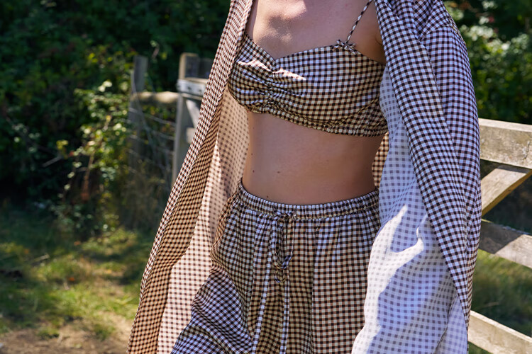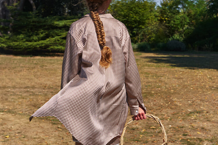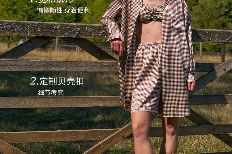 Not Just Pajama British ranch series silk brown plaid printed tube top shorts boyfriend shirt plaid tube top S