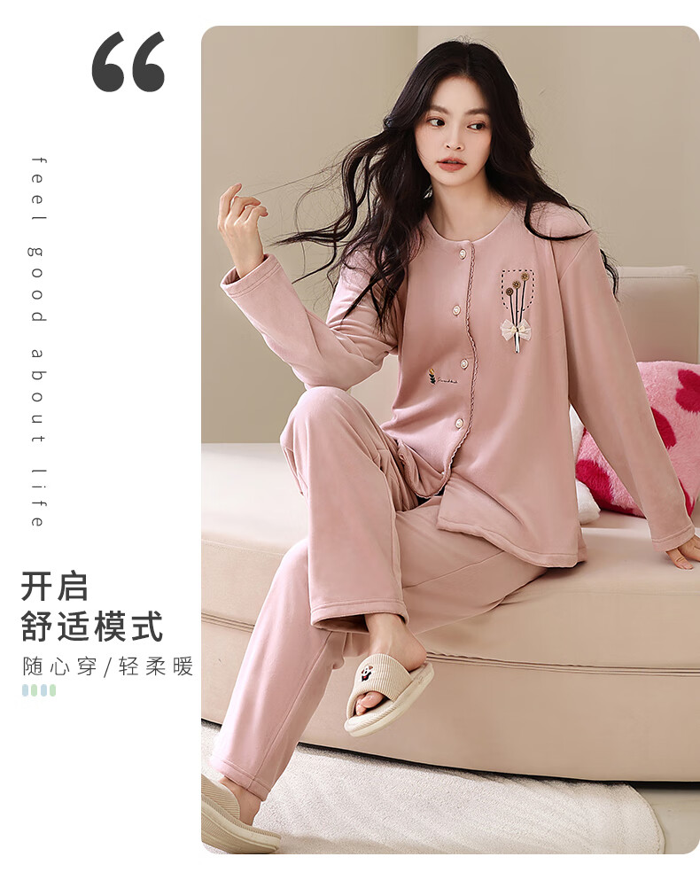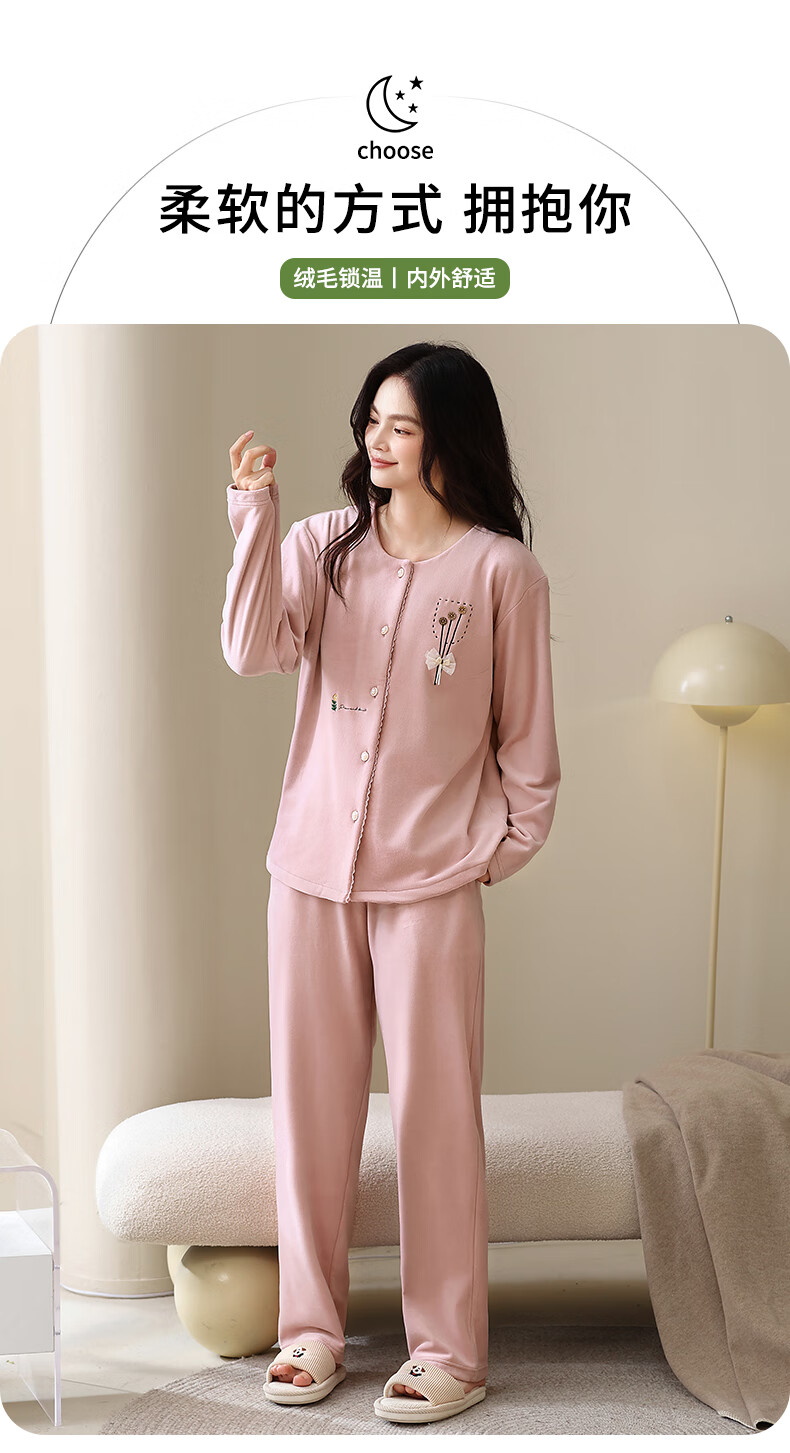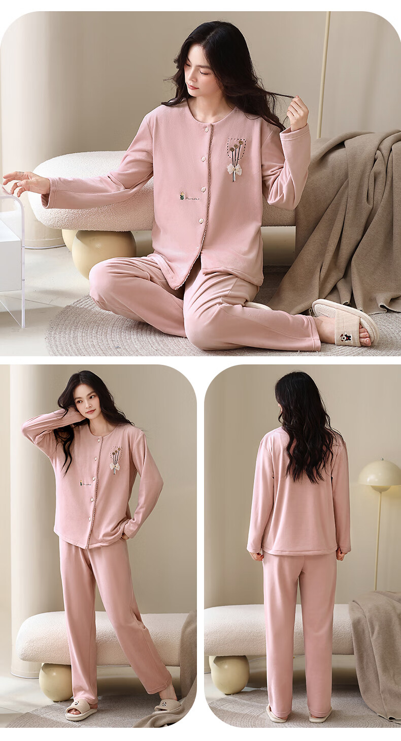 Chongxin 25-year new anti-static soft island velvet pajamas for women autumn and winter thickened velvet warm home clothes set G 67011 bean paste M female height 150-160 weight 80-100 Jin Jin equals 0.5 kg