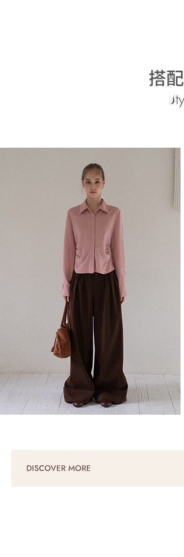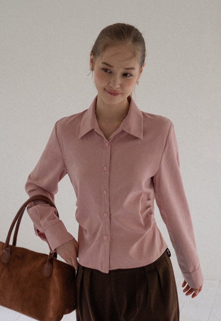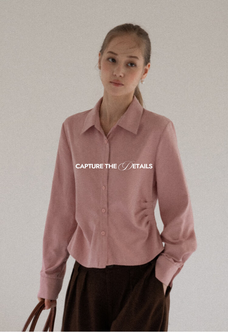EGGKA pink pleated design long-sleeved shirt layered with waist and temperament short top E25A60131BK Pink S