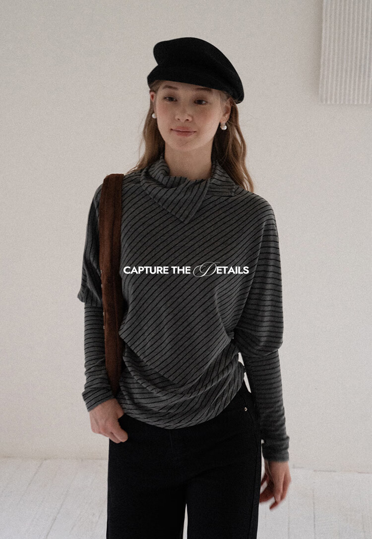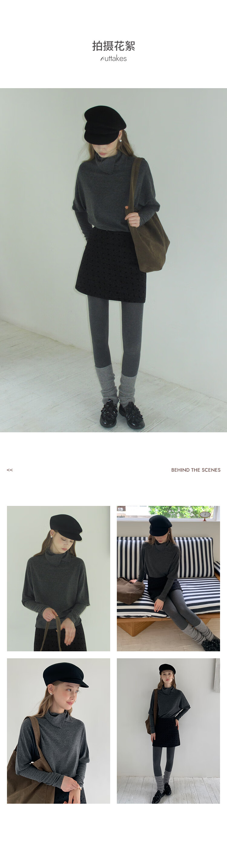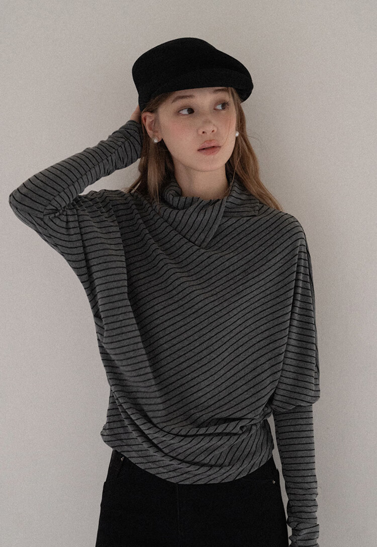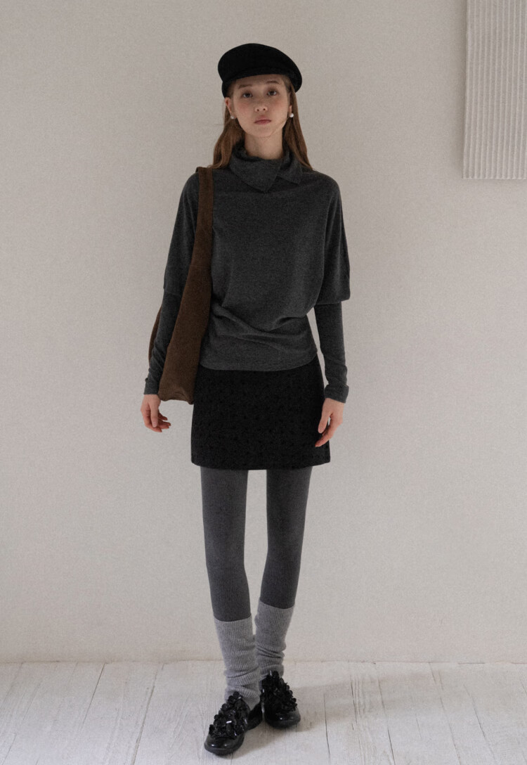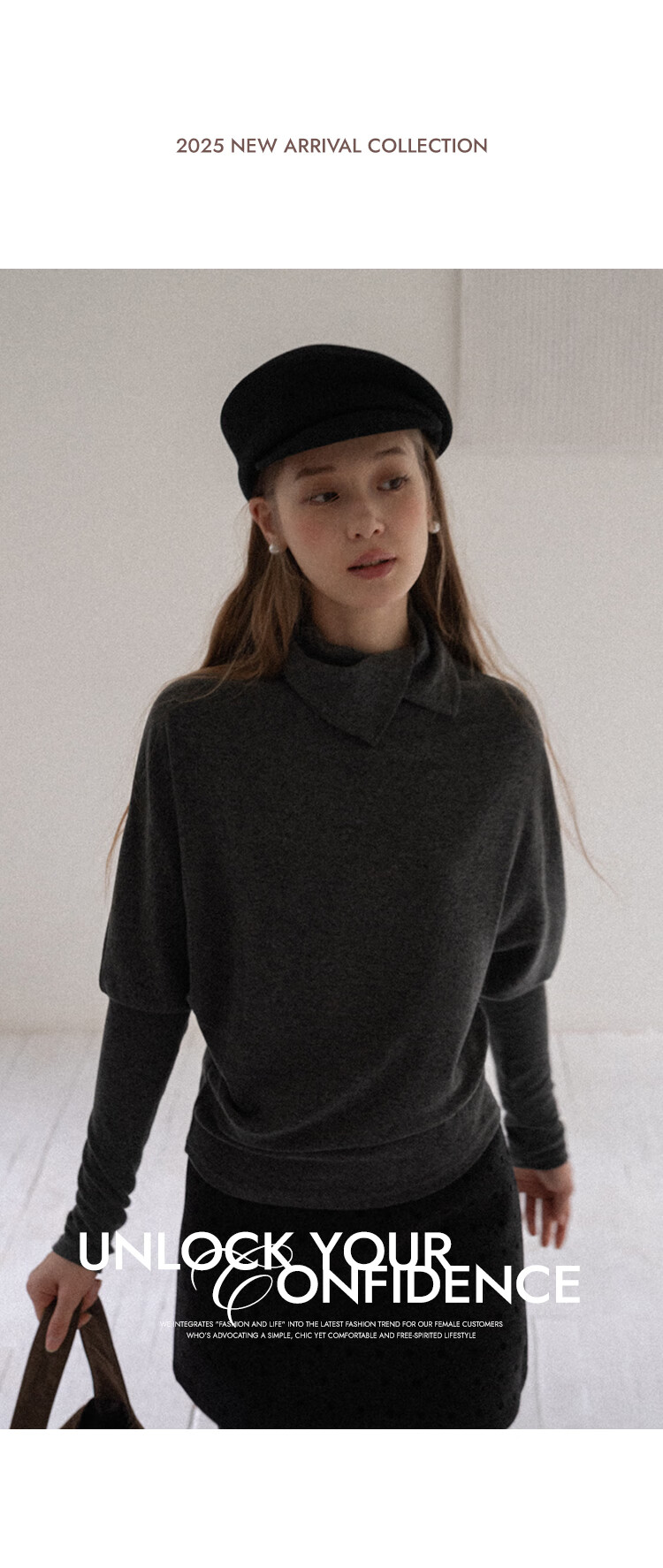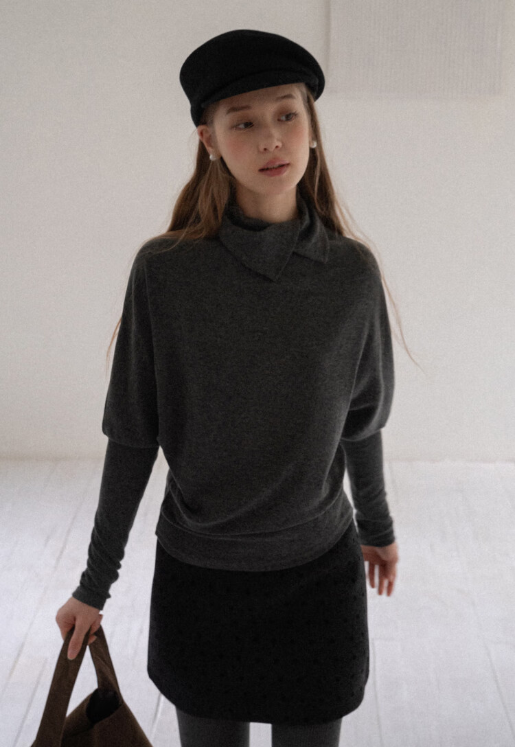EGGKA French irregular lapel bat sleeve waist T-shirt autumn and winter temperament long-sleeved top E25A30175AF dark gray one size