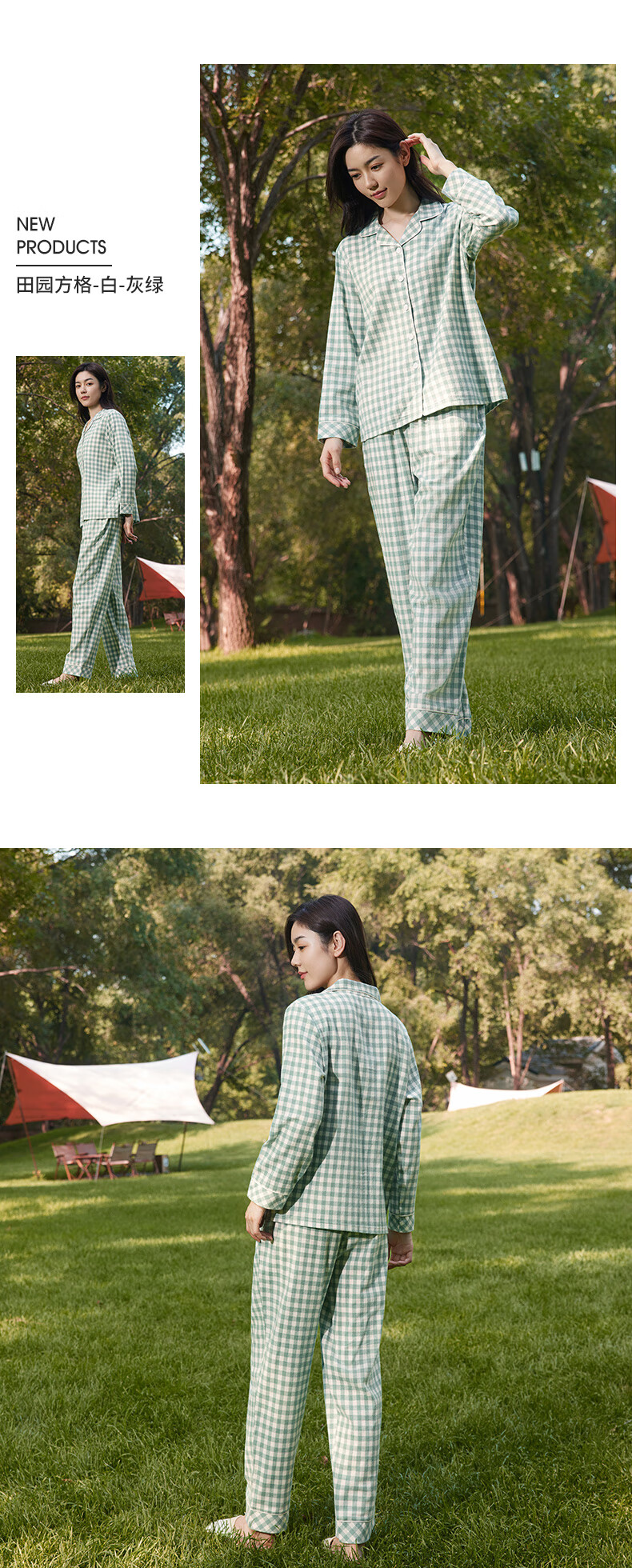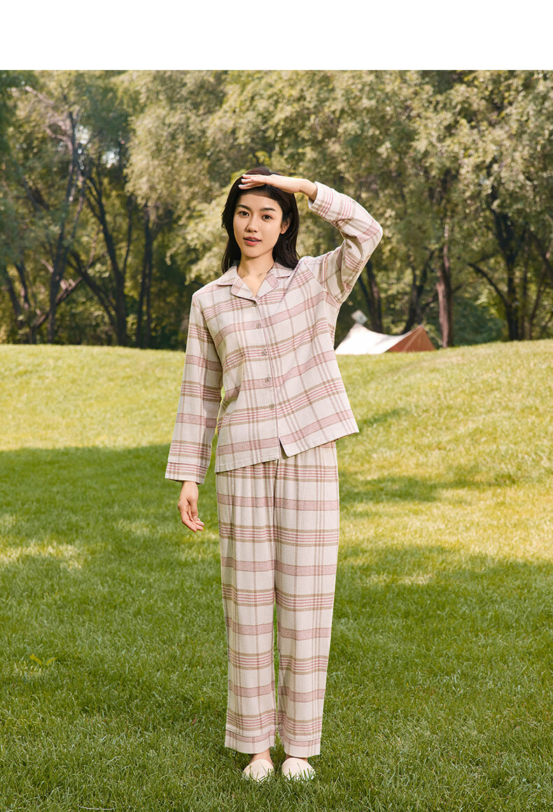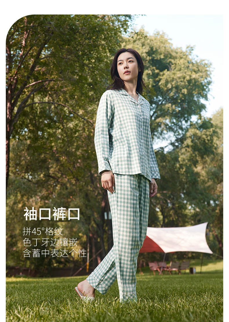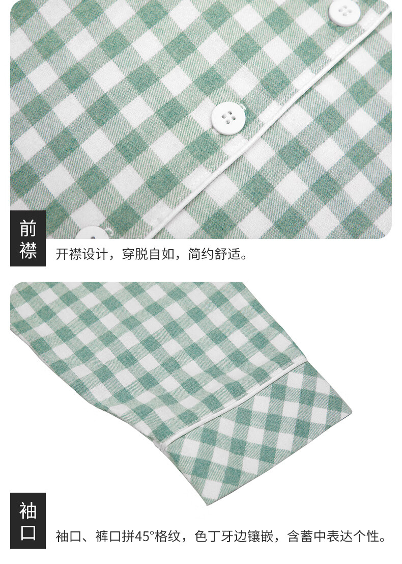 Copper velvet check cotton home women's set 2024 autumn and winter new suit women VJ124 Pastoral checkered-white-grey green M 170_95