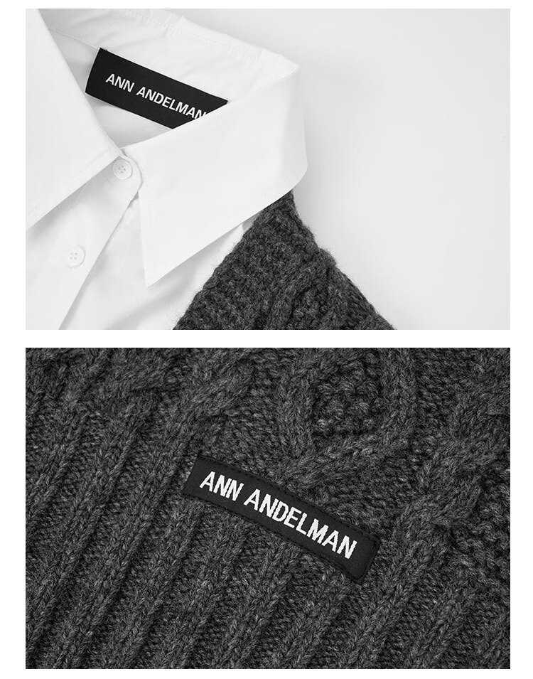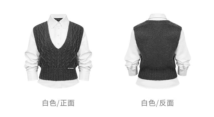 ANN ANDELMAN Real two-piece U-neck knitted vest white long-sleeved shirt retro college style simple and capable white XS