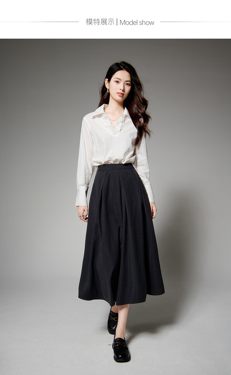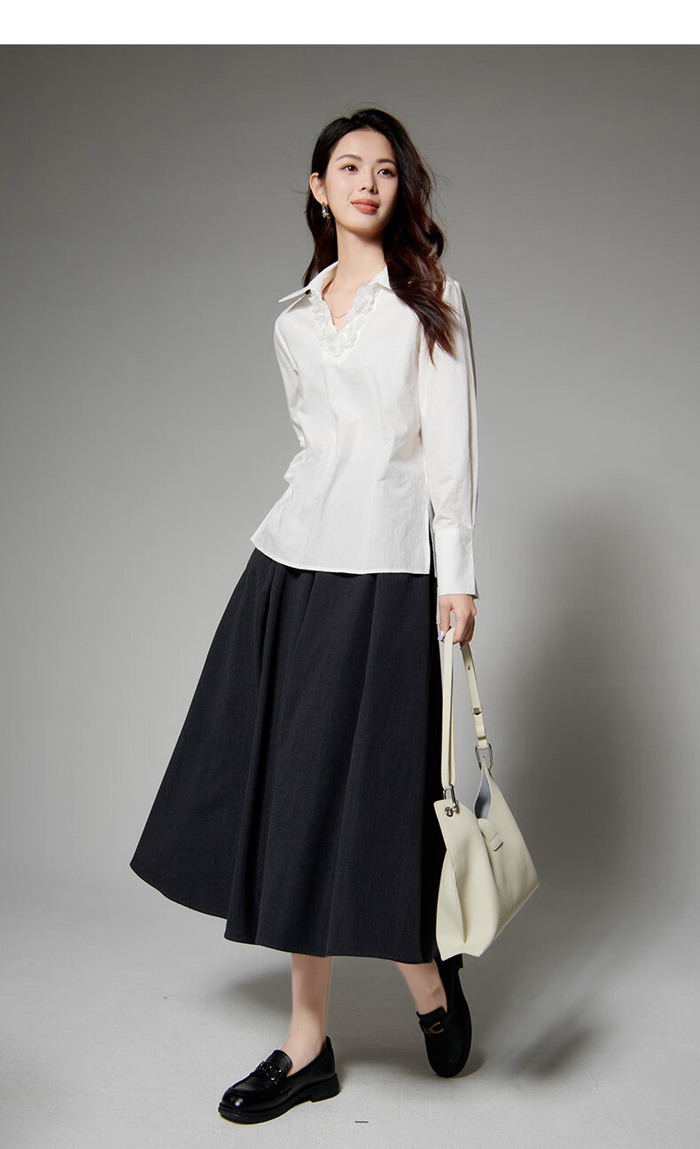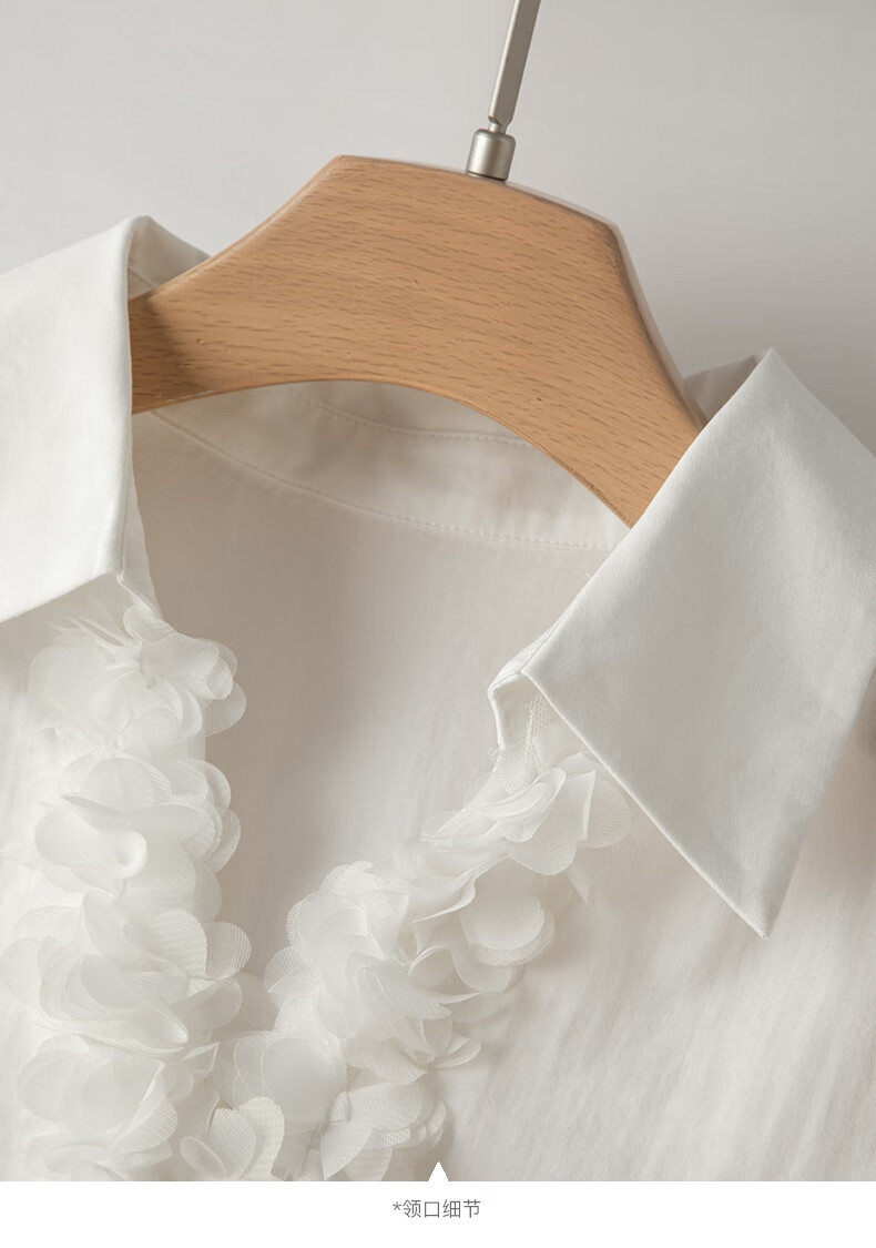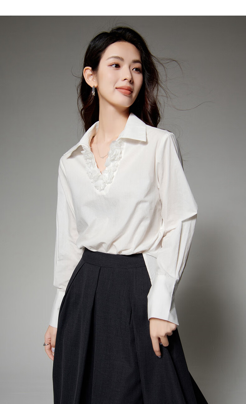 Late white off-size clearance temperament V-neck cotton shirt temperament lace collar light mature style shirt for women white L