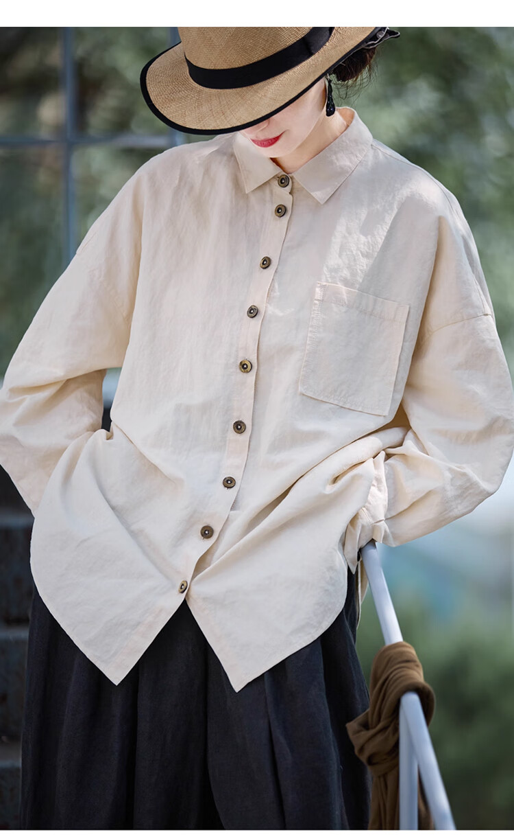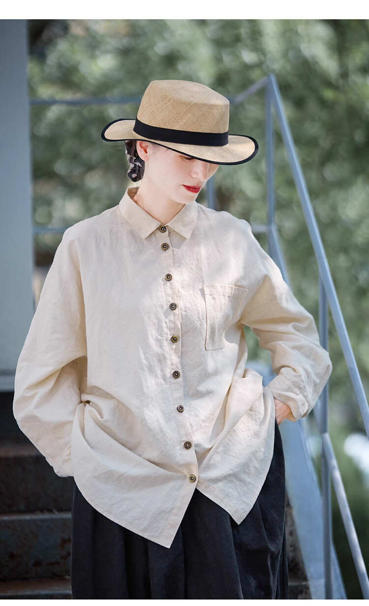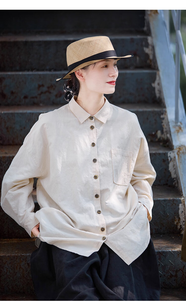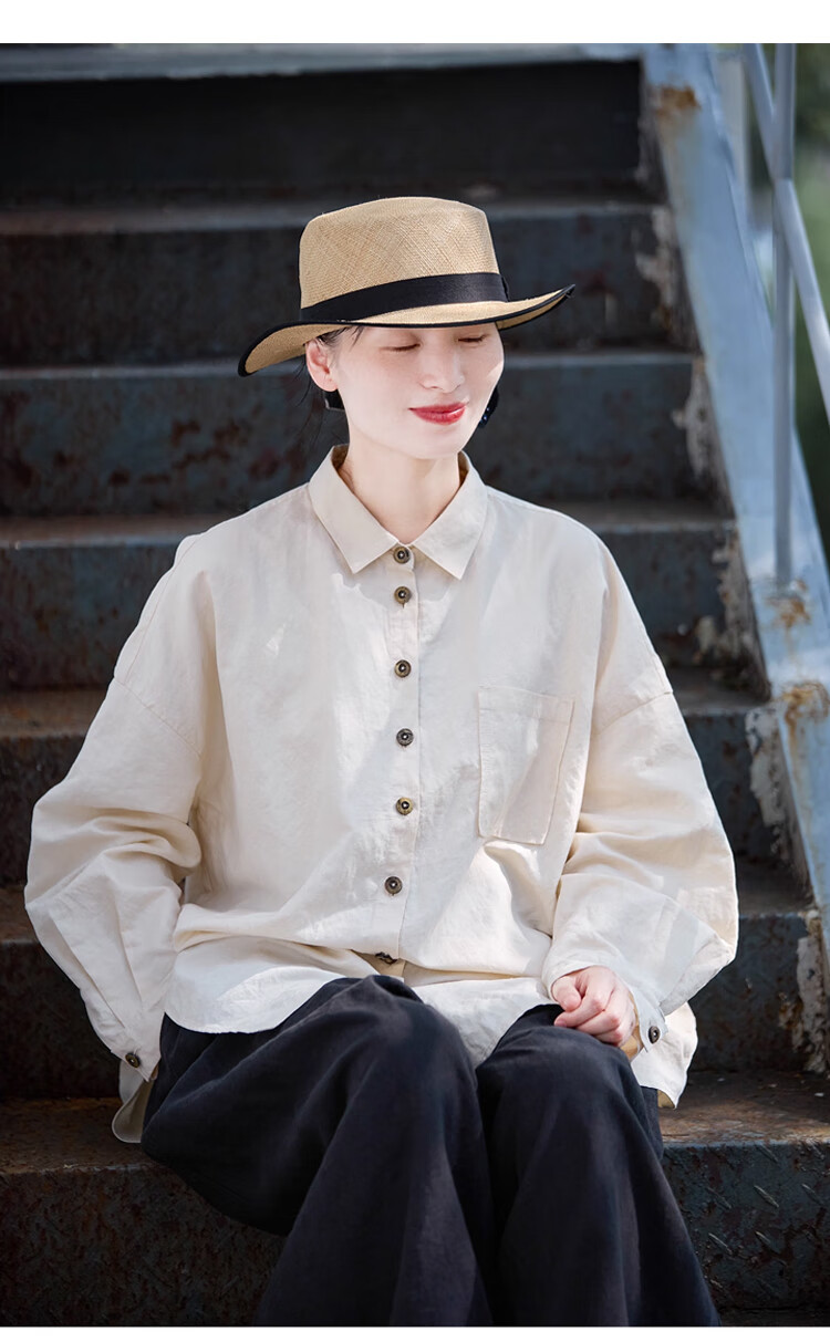 Know the pen and ink, folk art, three seasons new warm embryo color cotton and linen, high quality, relaxed and soft antique large shirt, the taste of time M