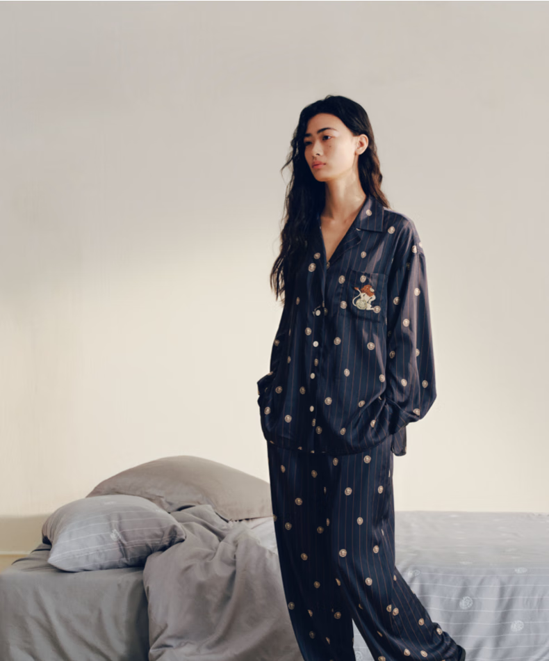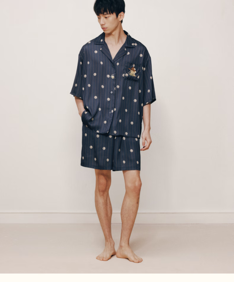 Brutalist Home Furnishing Gong Jun's Same Style Urban Beast Lion Star Satin Home Clothes Set Can Be Weared Out For Couples All Seasons Lion Star Satin Long Home Clothes Wishing Coin XS