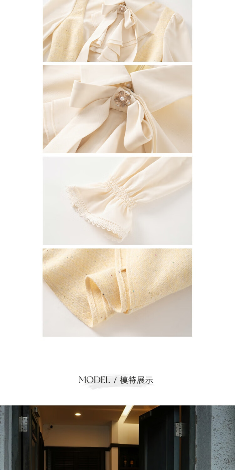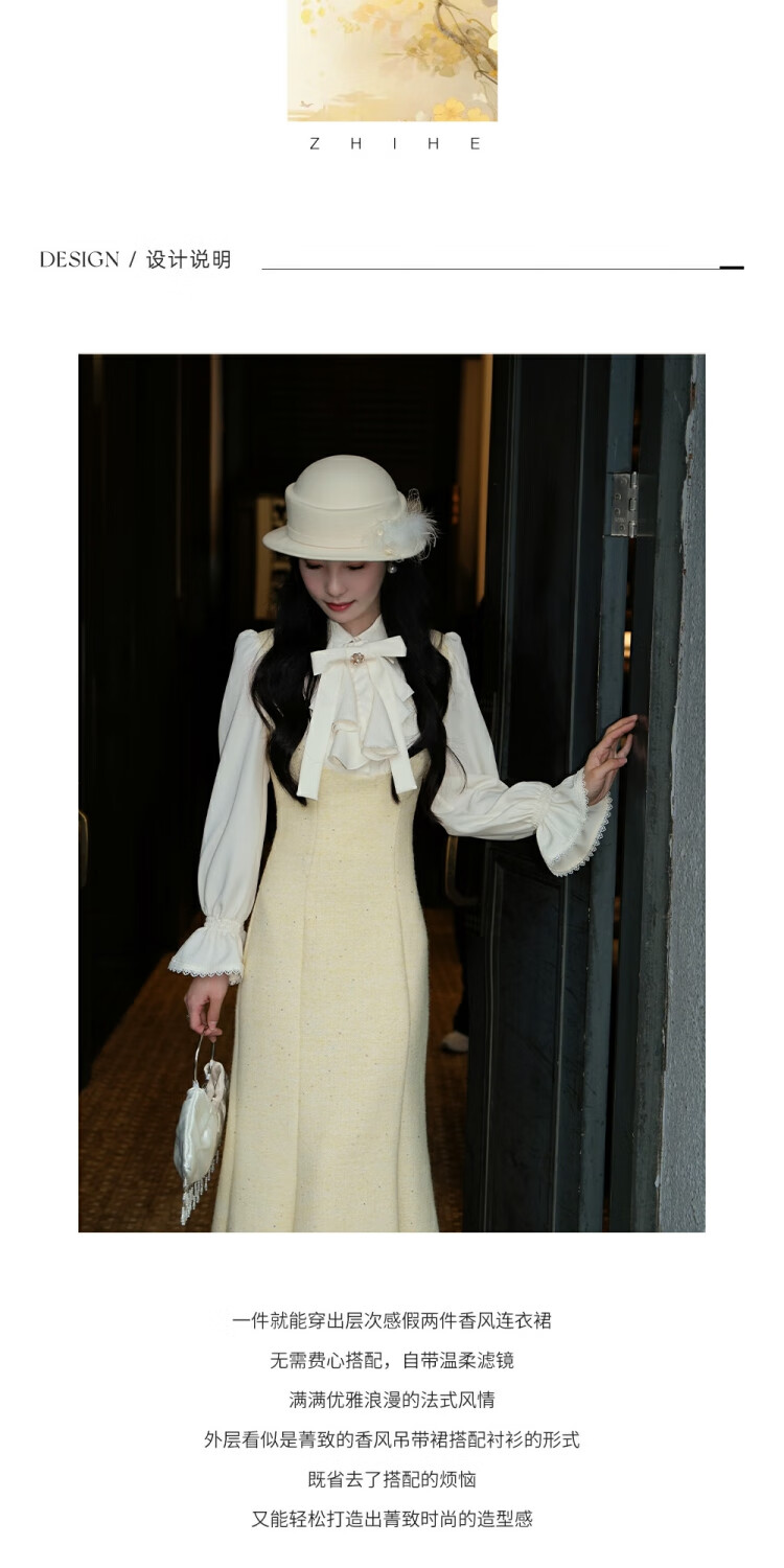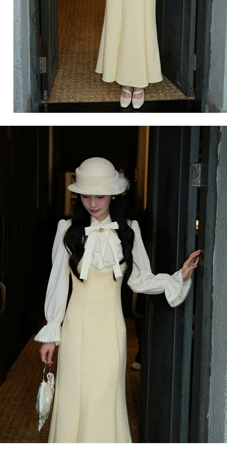Wuyan Yihe Anne Romance French Romantic Sheep Wool Fragrance Fake Two-piece Dress Dress Ready S