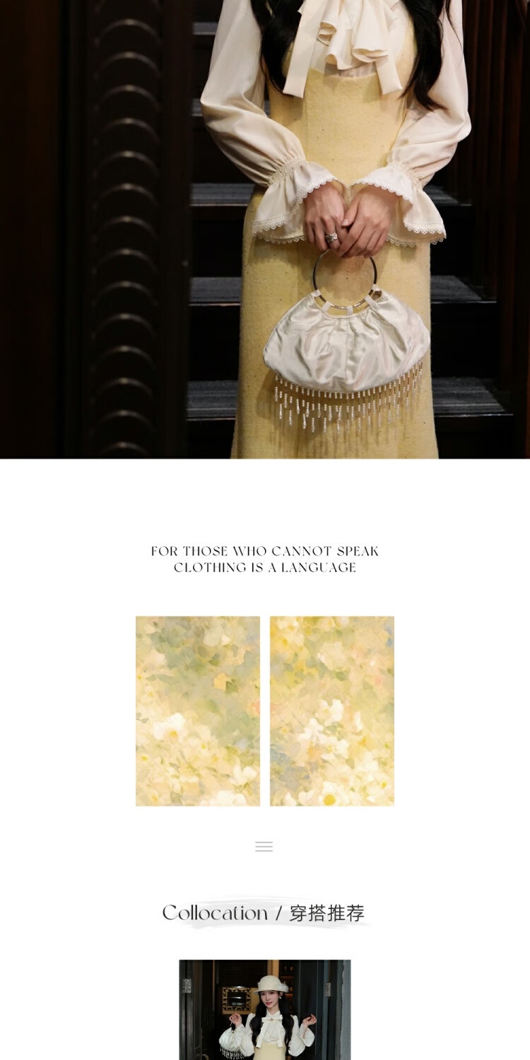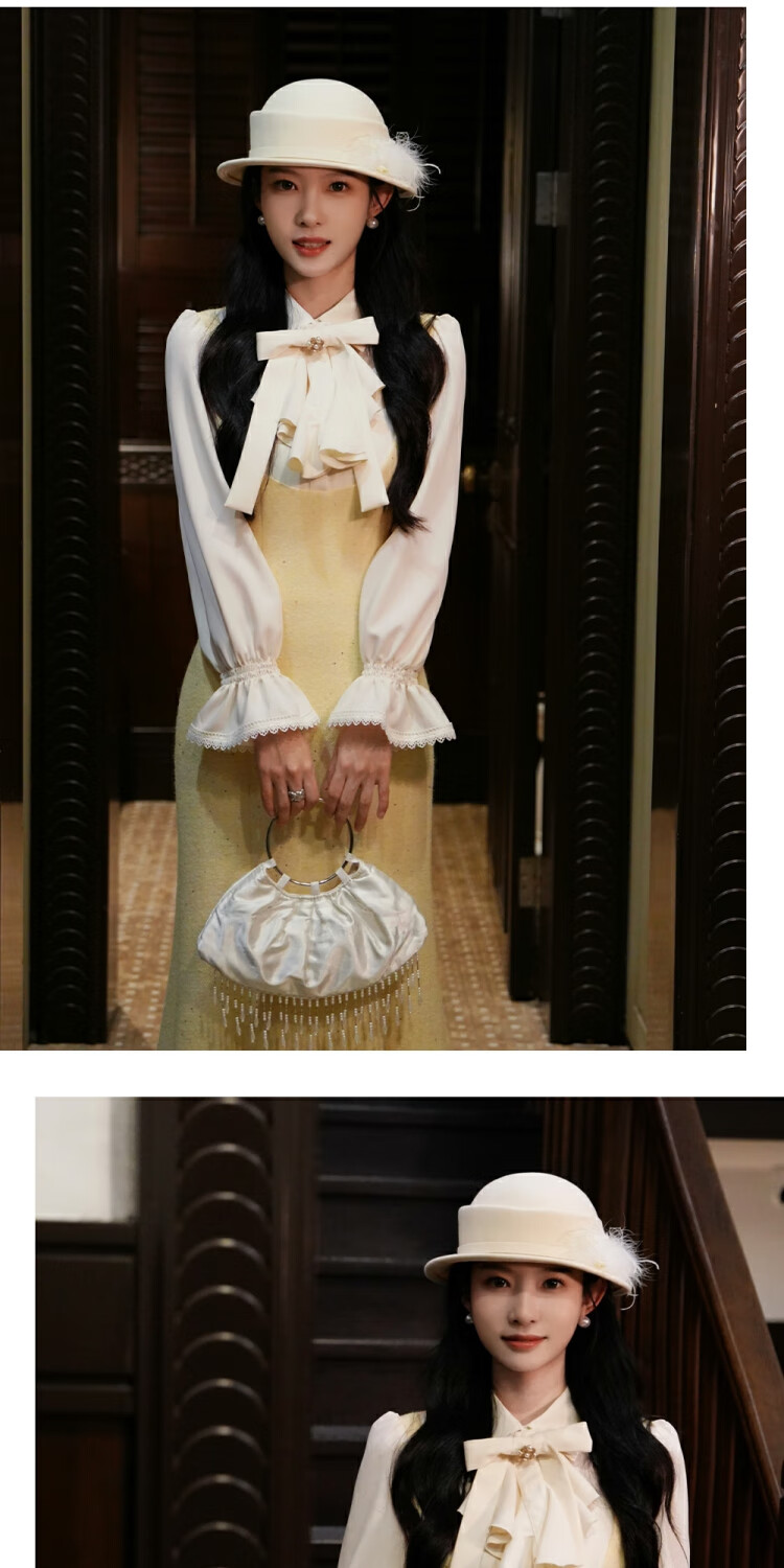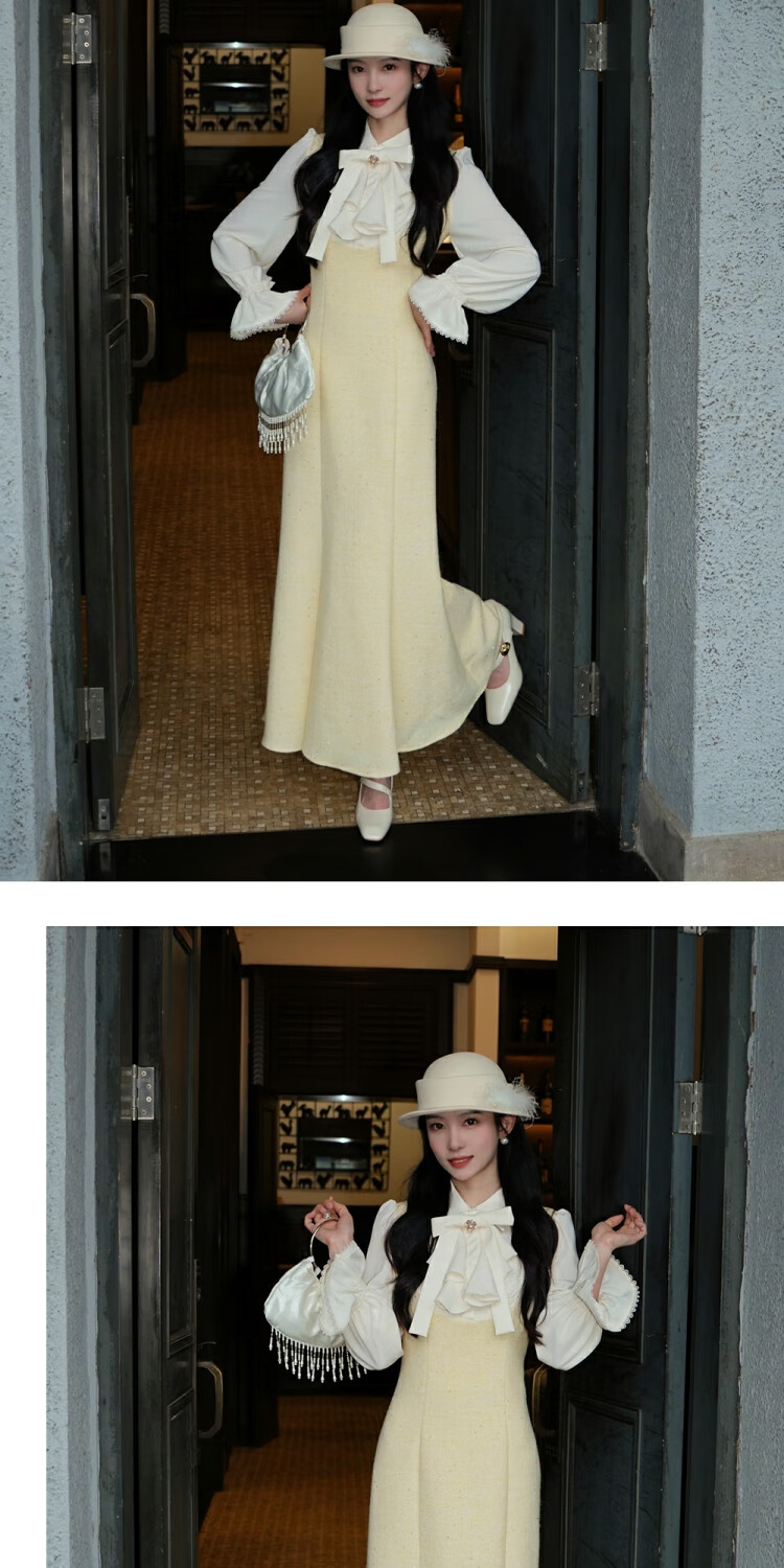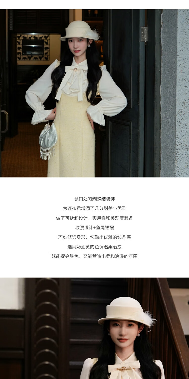Wuyan Yihe Anne Romance French Romantic Sheep Wool Fragrance Fake Two-piece Dress Dress Ready S