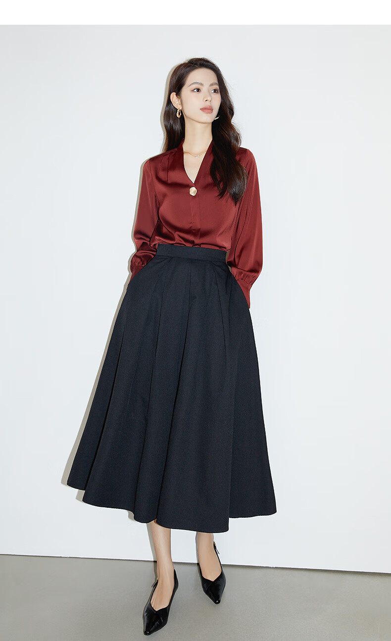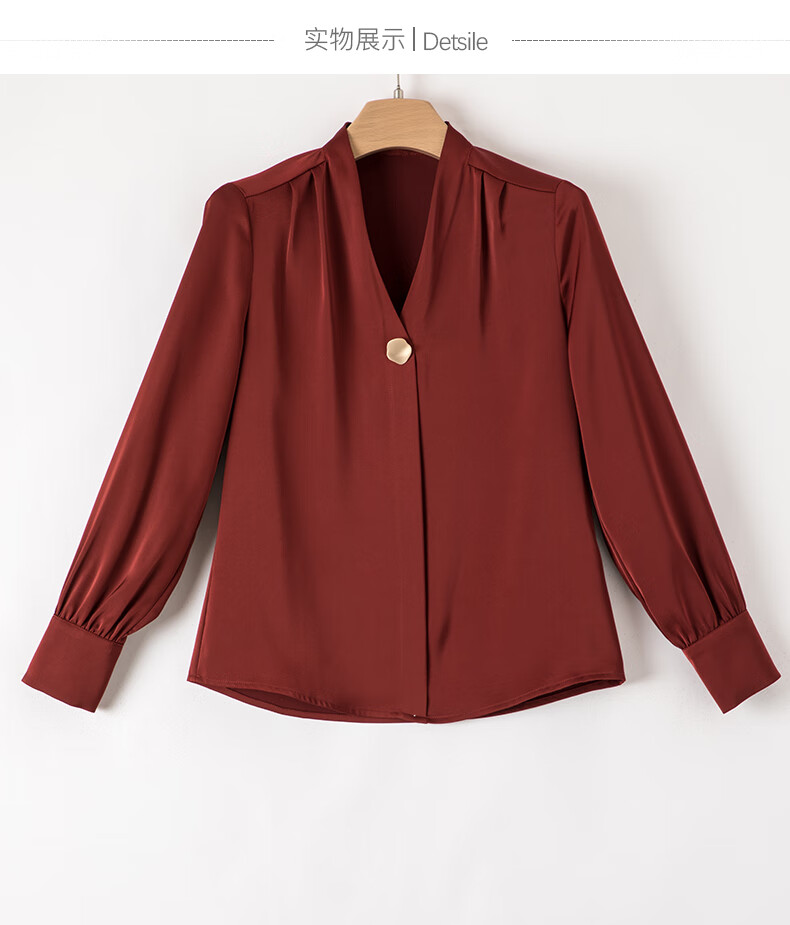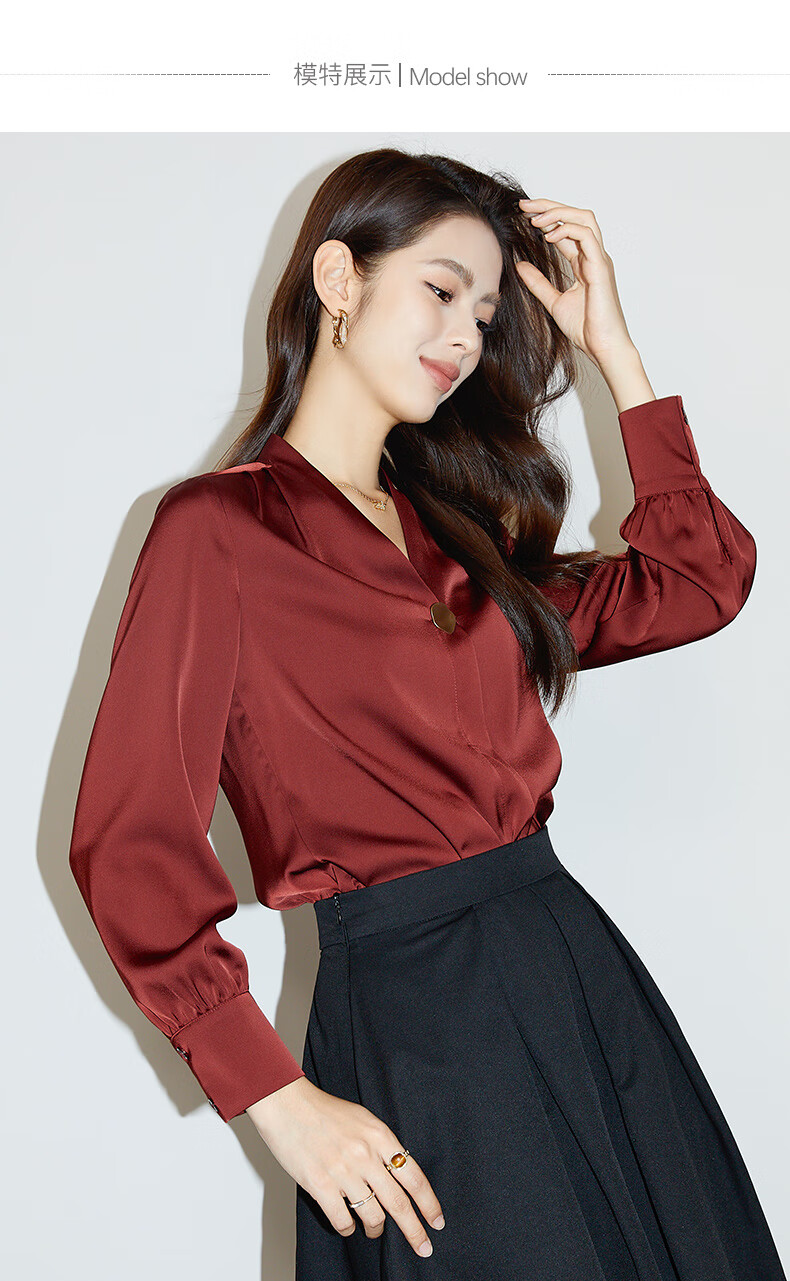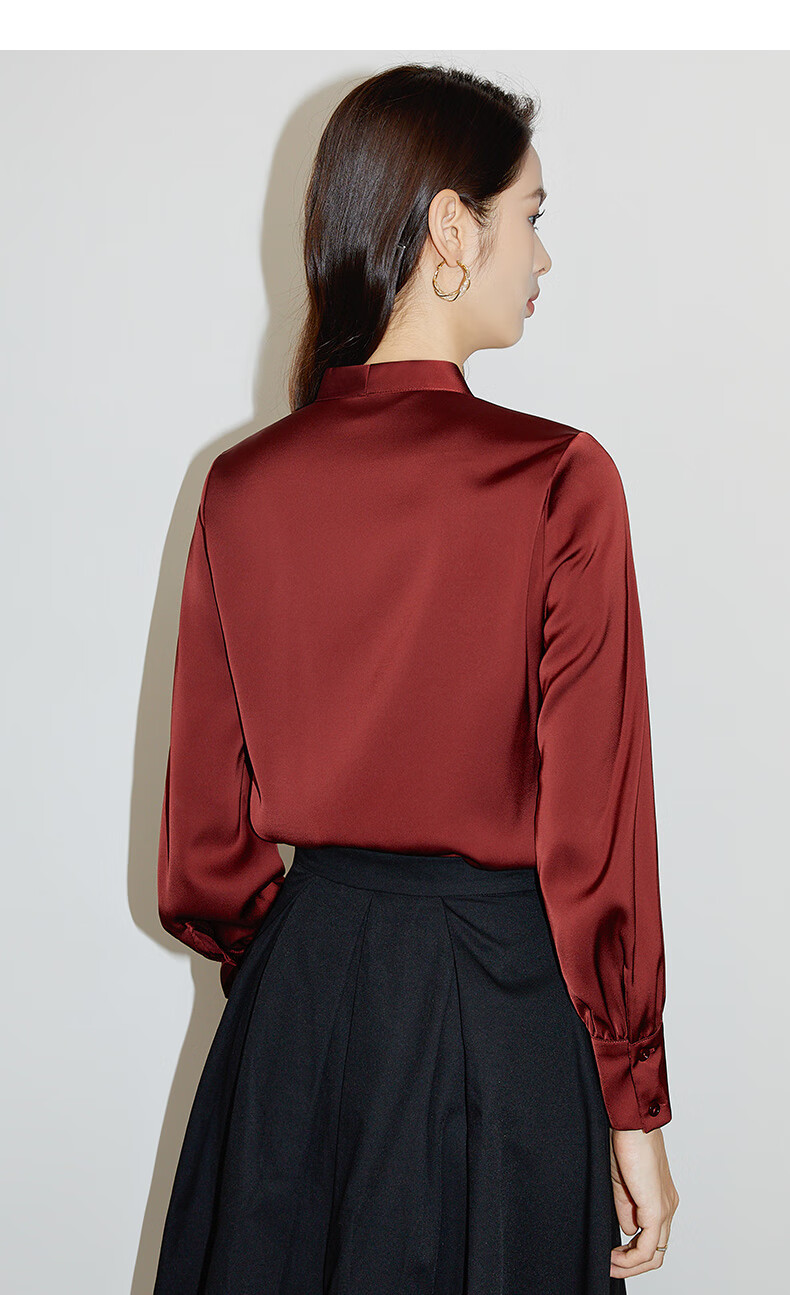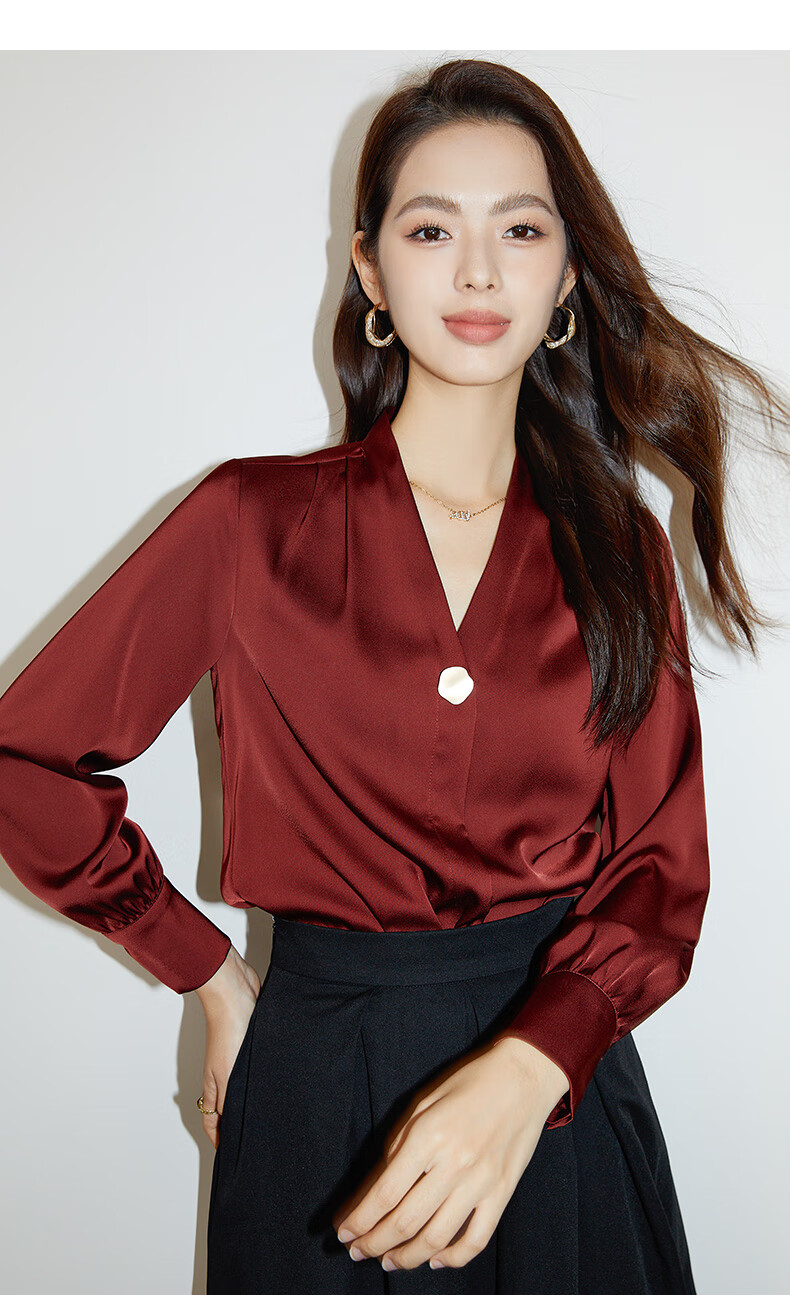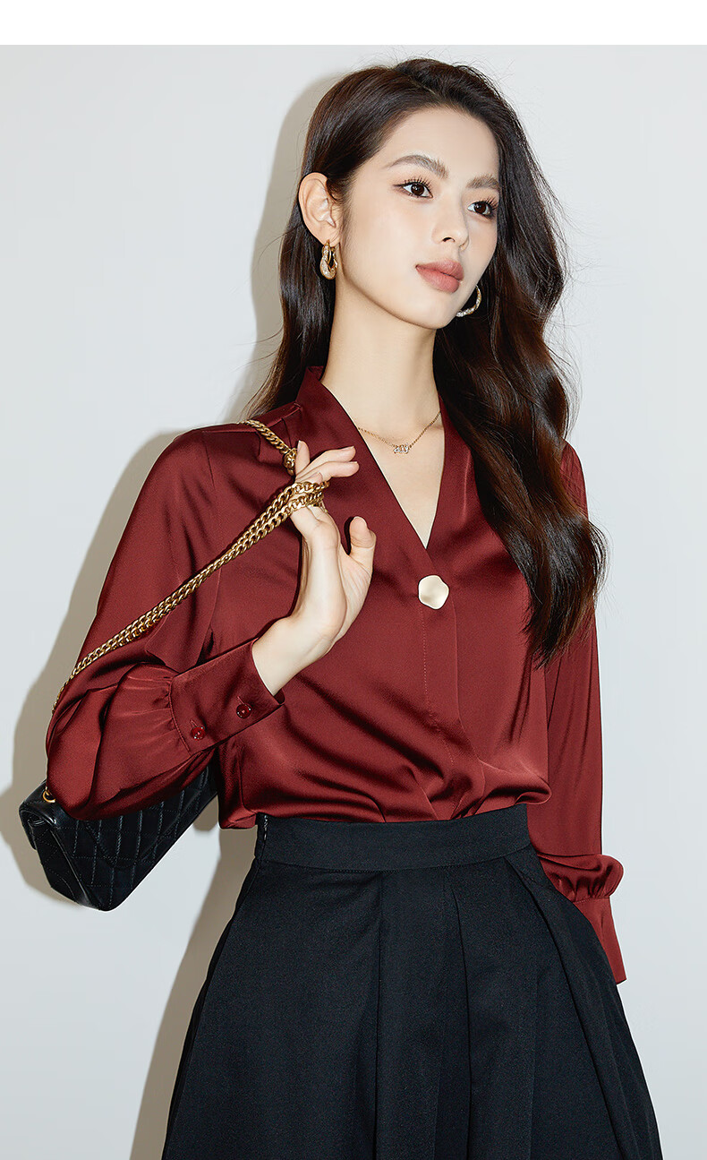 Late White Exclusive 2025 Autumn Fashionable and Western Style Top Chinese Red Long Sleeve Shirt Women's Shirt Dark Red M