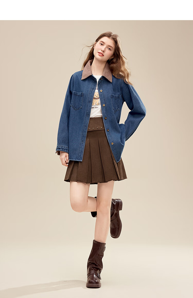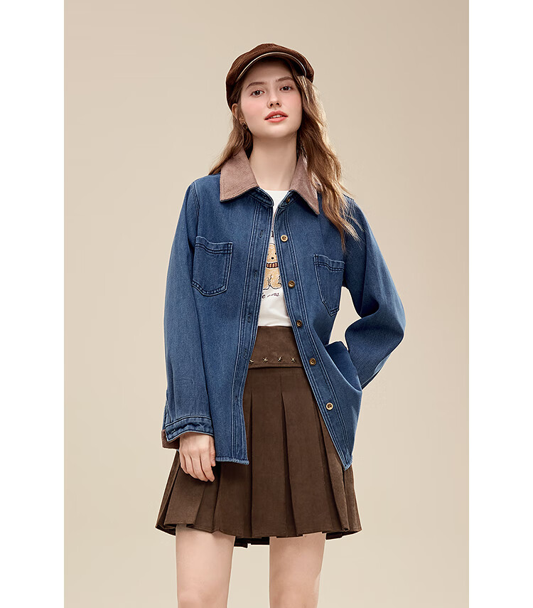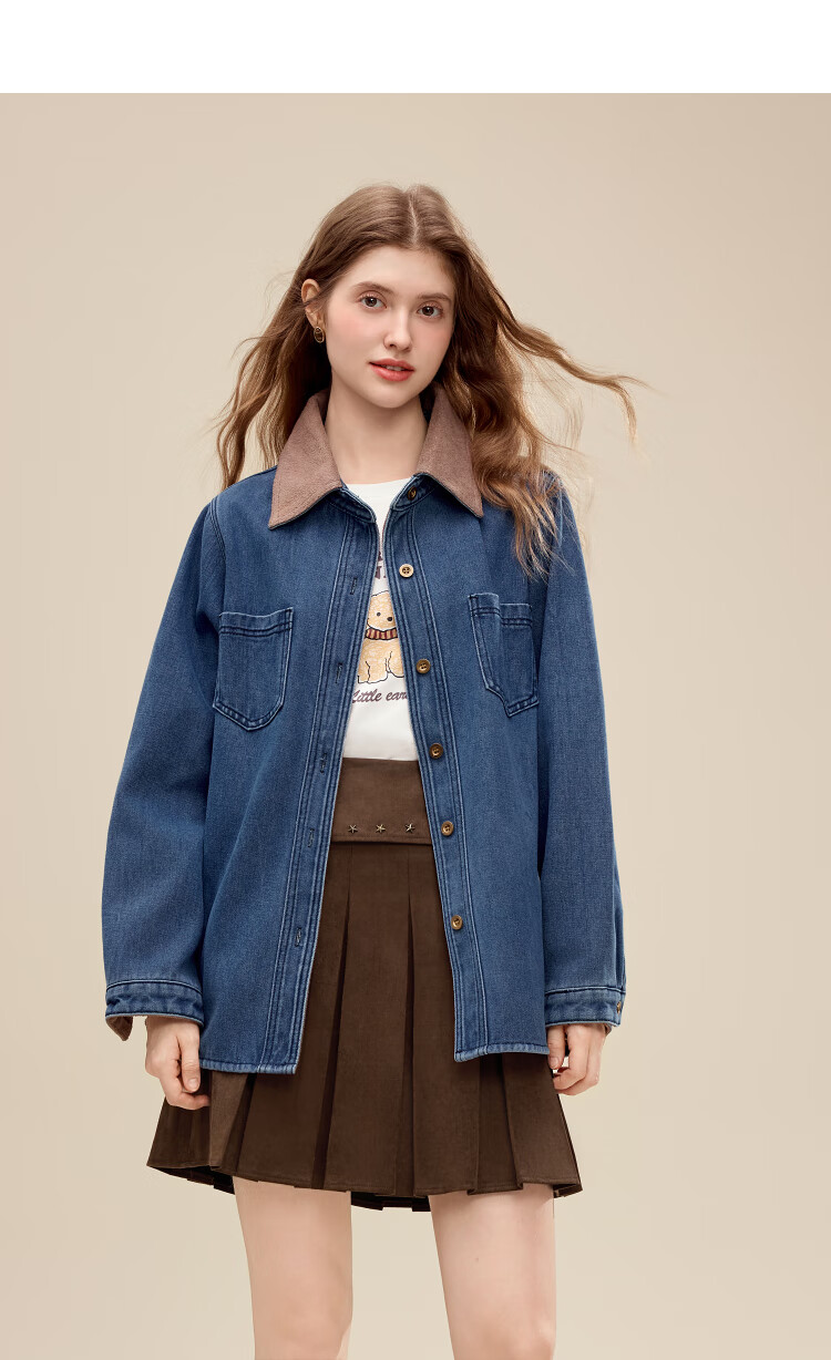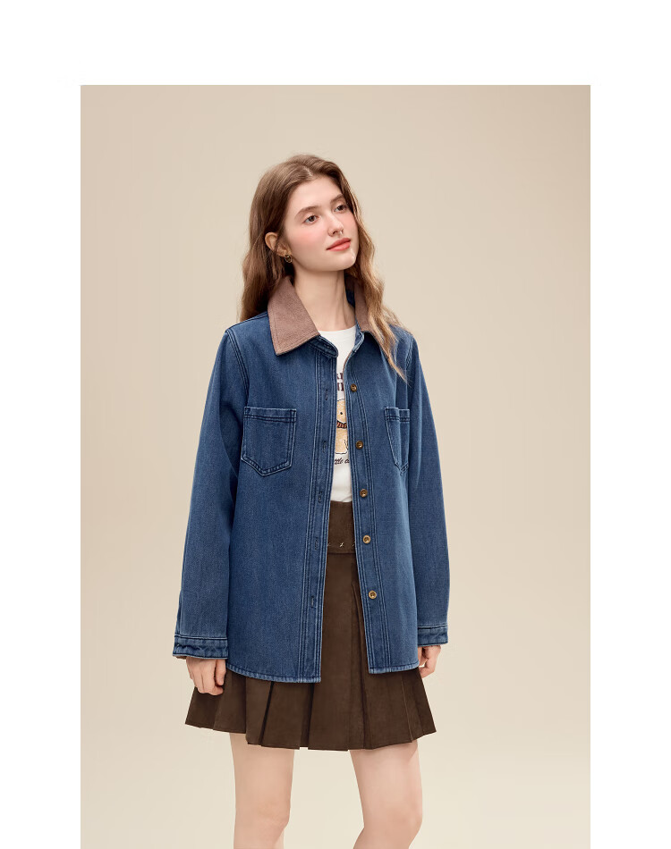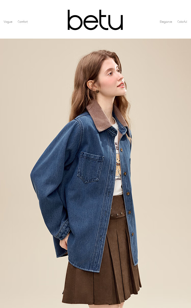 Betu Women's 2025 Winter New Shirt Color Block Collar High-Quality Comfortable Cotton Long-Sleeved Top Women 2511X02 Blue L