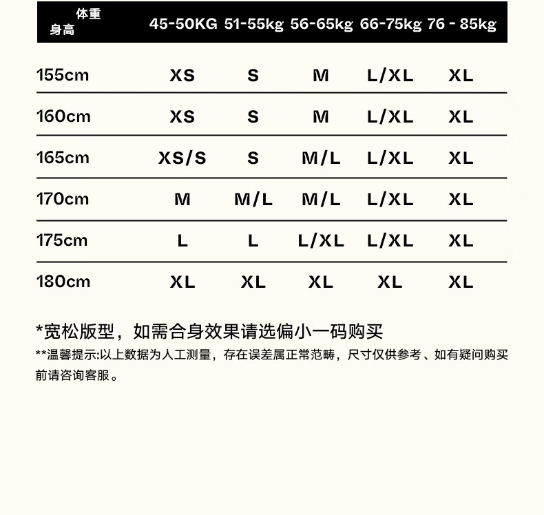 China (cm) 160-165/84-86 165-170 / 88-90 167-172 / 92-96 168-173 / 98-102 170-176 / 106-110
