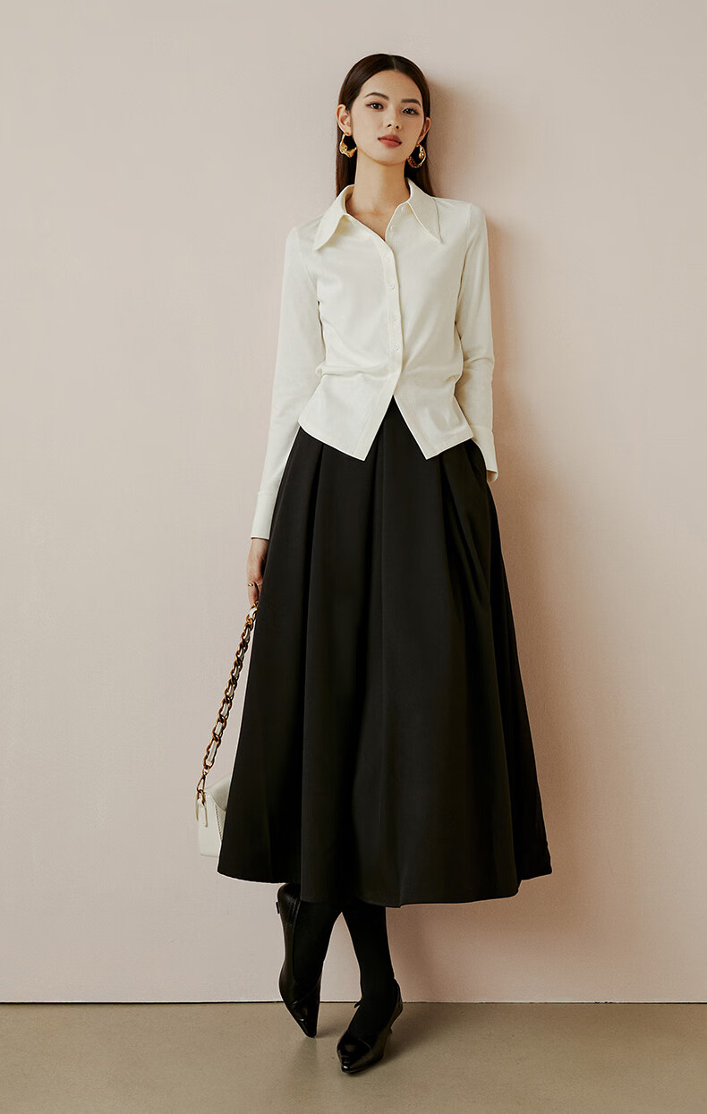Late white new product 2025 autumn cotton fashion shirt casual lapel solid color skin-friendly commuting shirt for women off-white S