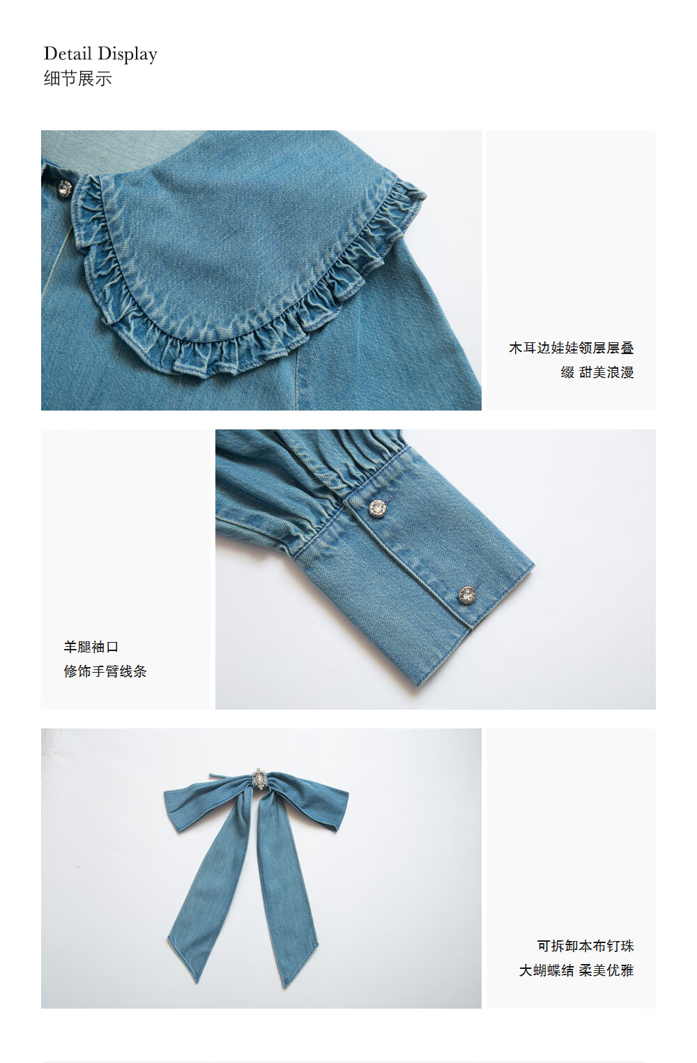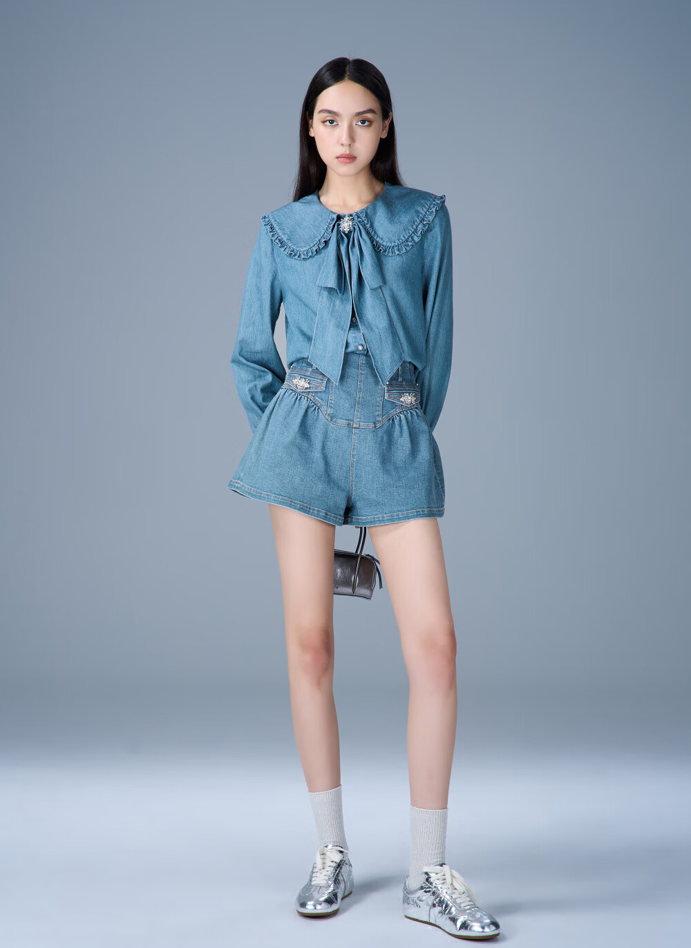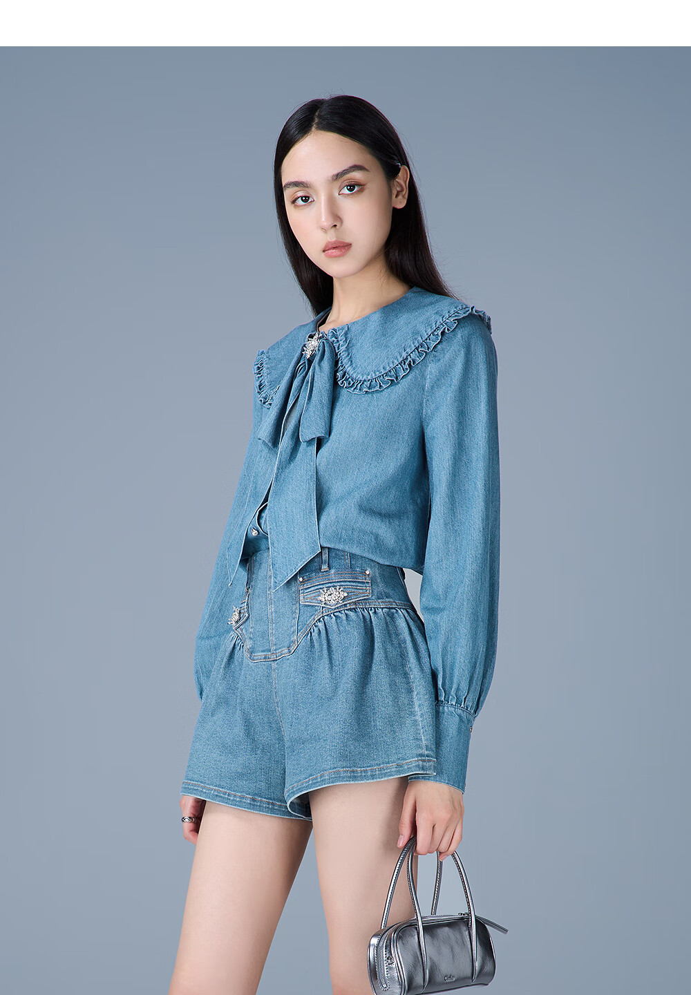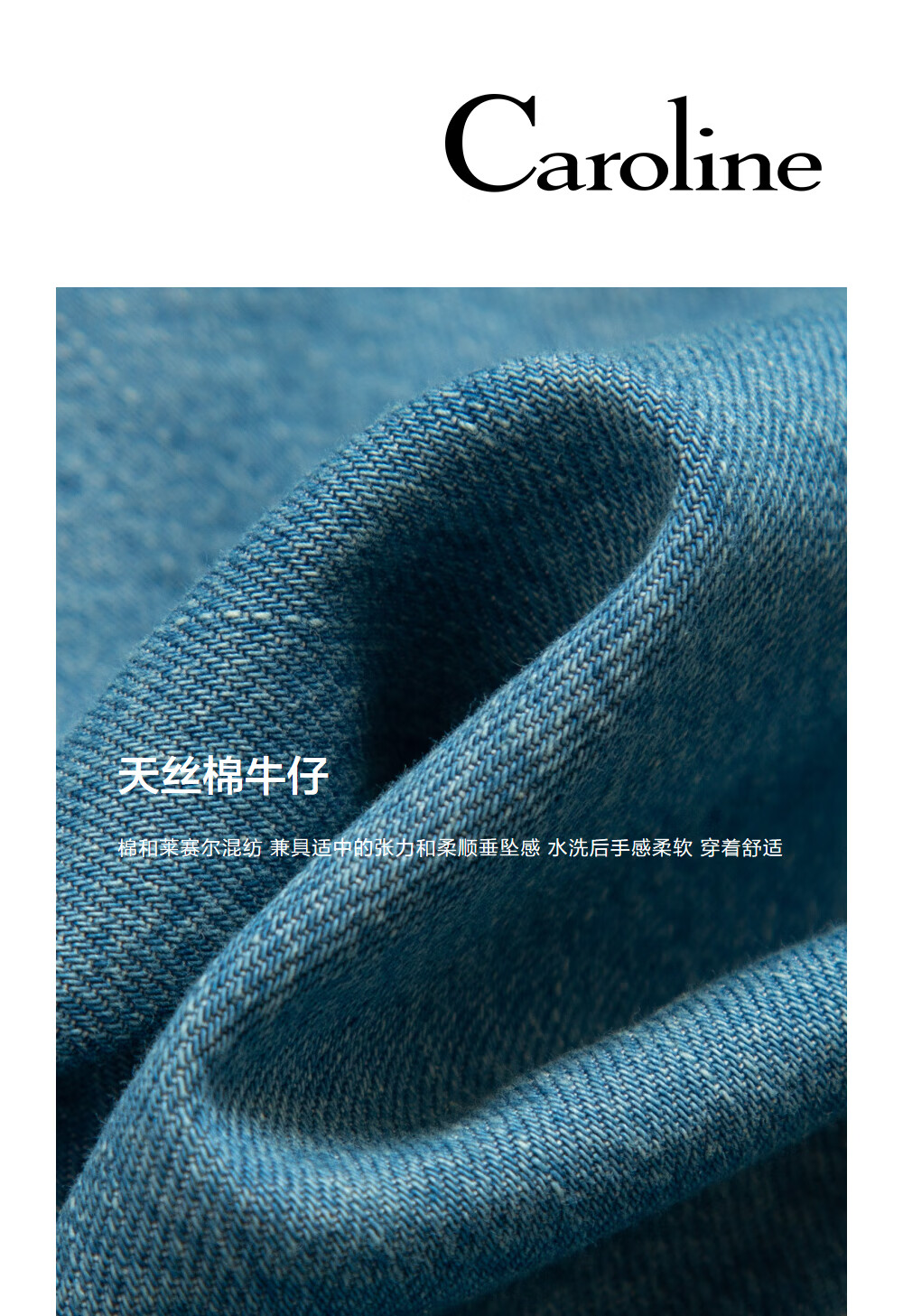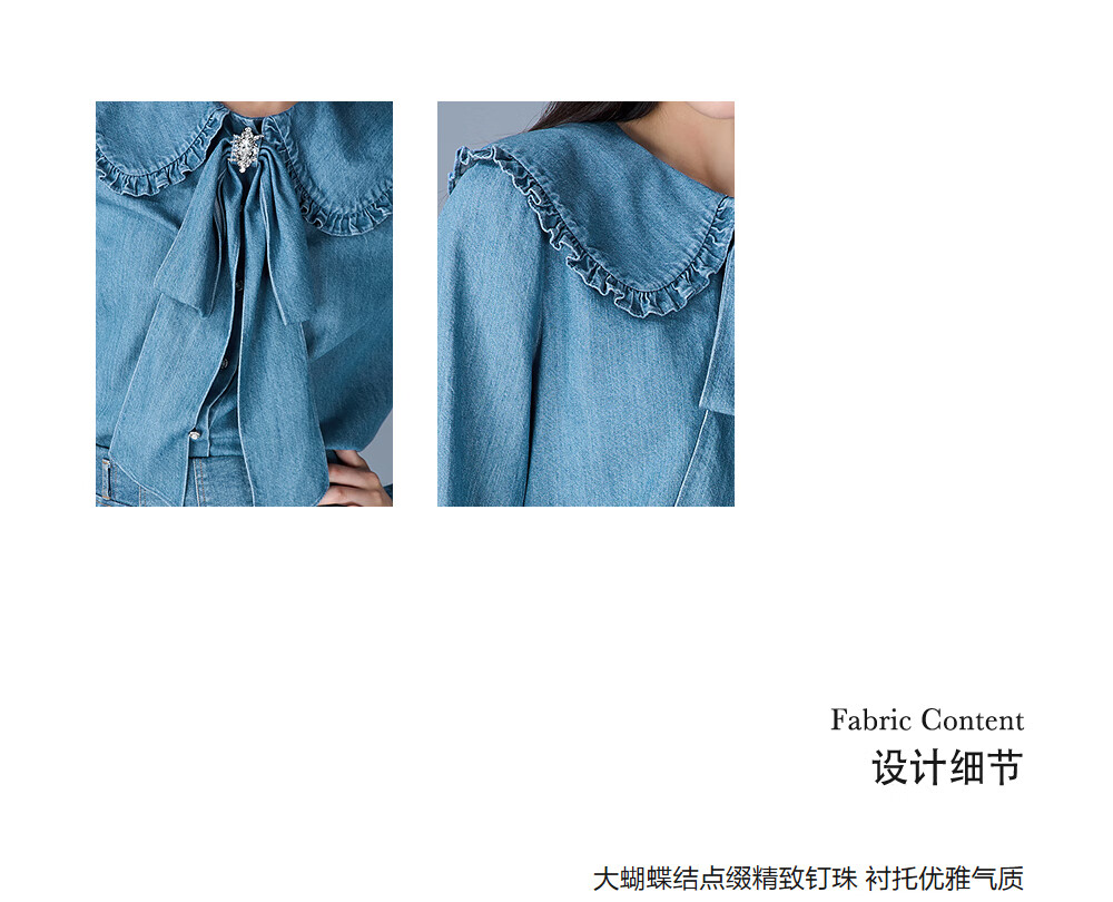 CAROLINE Tencel Cotton Denim Caroline 2025 Autumn New Doll Collar Shirt ERC4C02C Blue L