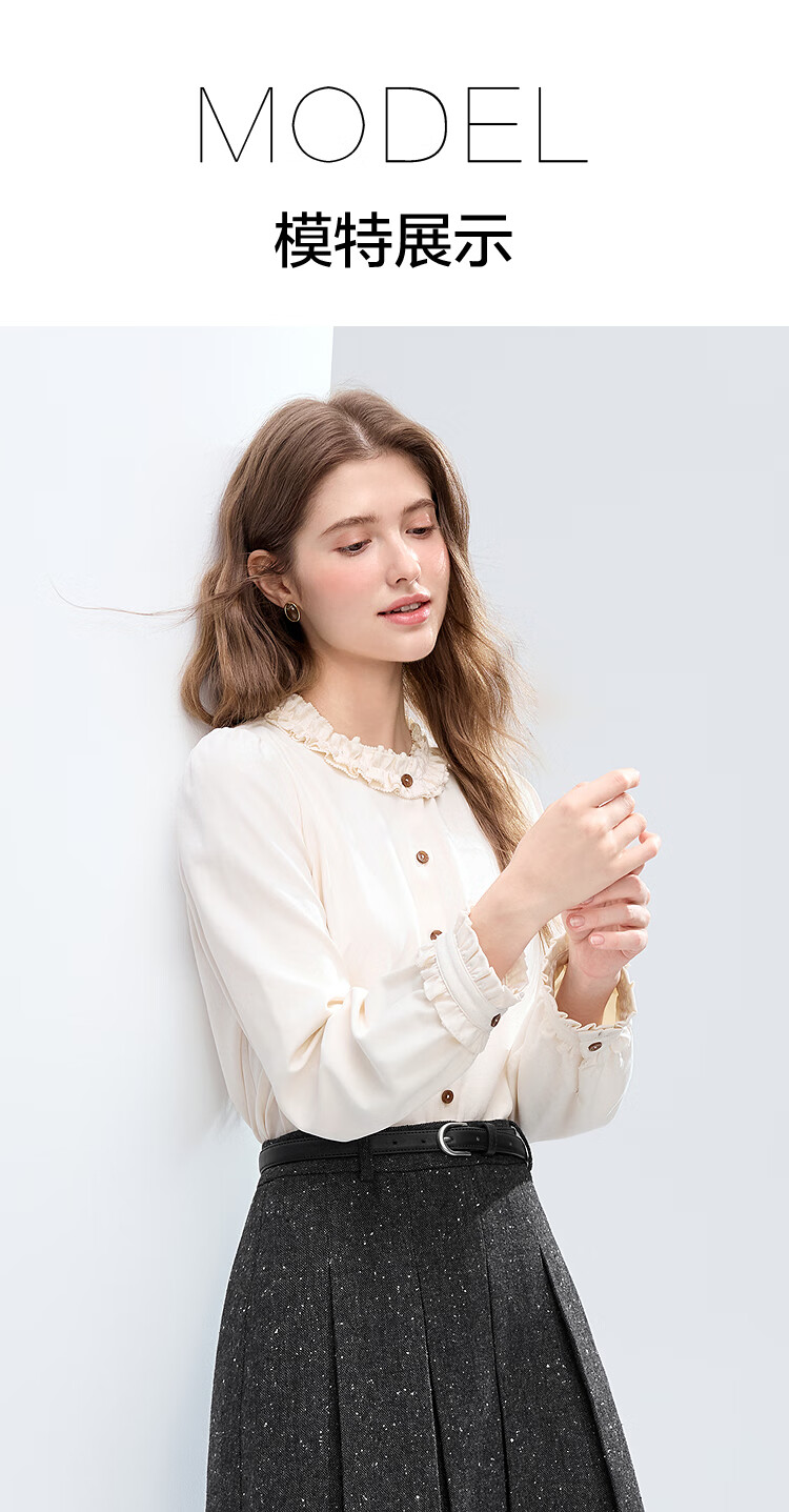 Betu women's 2025 winter new shirt ruffle collar contrasting buttons sweet age-reducing commuting top 2511T60 light apricot M