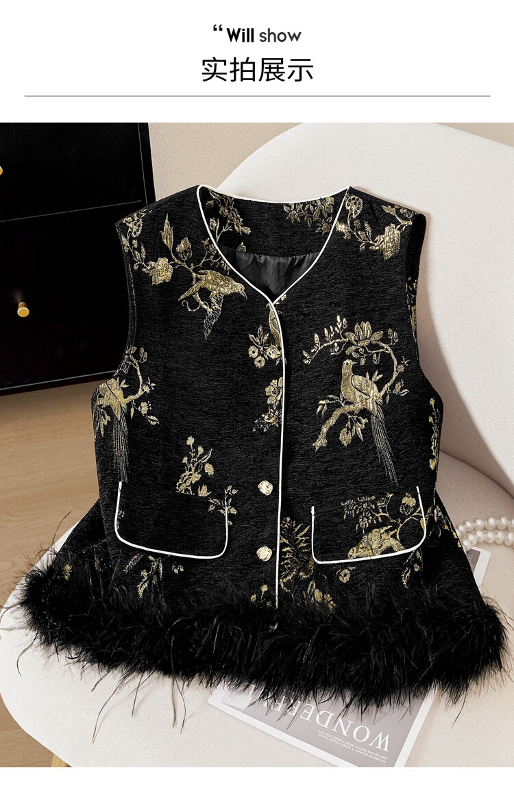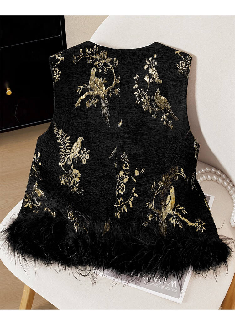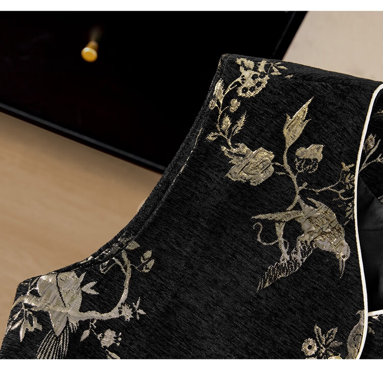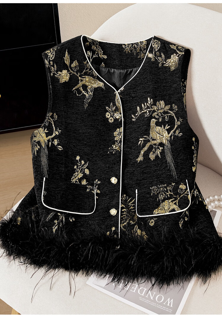 She pool V-neck vest 2025 autumn new women's new Chinese style retro single-breasted loose style stacked vest black gold one size