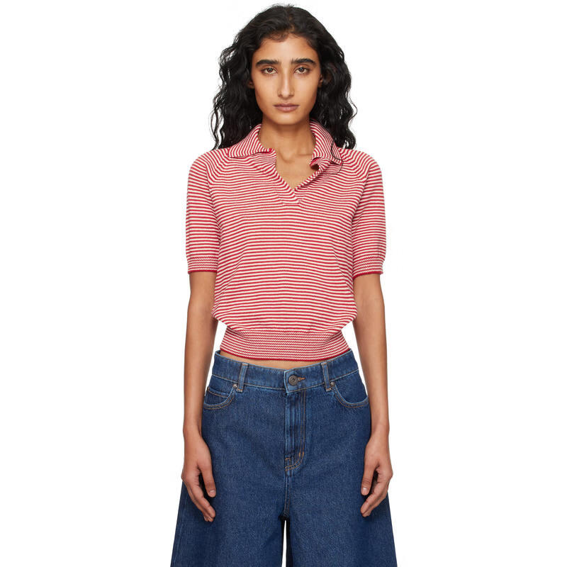 MAX MARA Light Luxury Women's Red & Off-White JUNIOR POLO Shirt Red 20 | XL