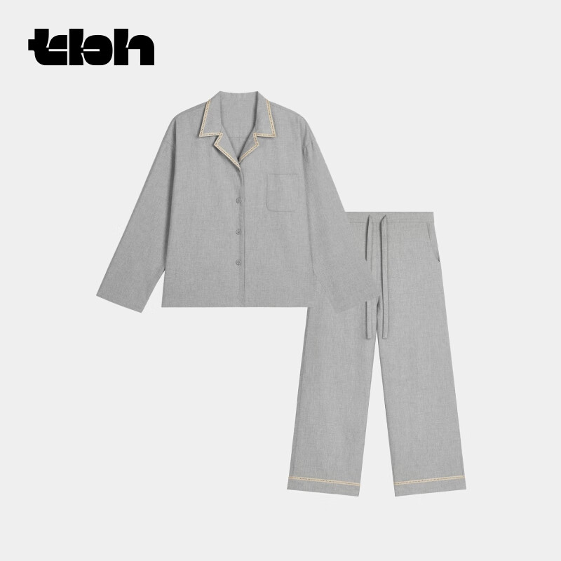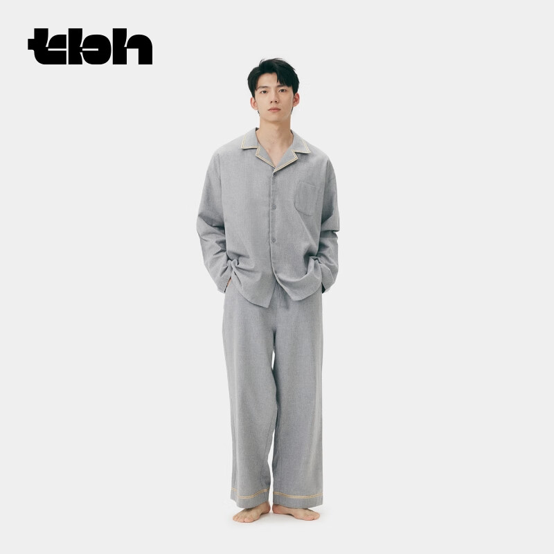 Brutalist Home Australian Wool Cotton Picture Frame Home Clothes Set Can Be Weared as Couple Pajamas in Winter Australian Wool Cotton Picture Frame Home Clothes Set_Hemp Gray M