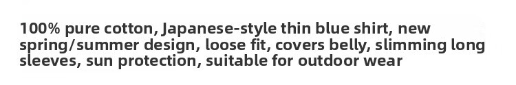 MUJ MUJ pure cotton blouse, loose, covering the flesh, slimming appearance, long sleeves with the same style Uniqlo 244# blue - with pockets 100% high quality cotton XXS