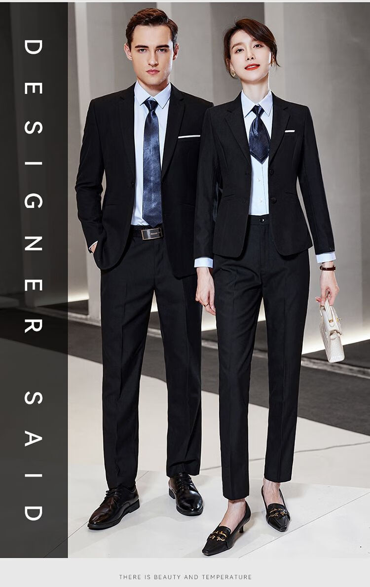 Pure business attire women's suit black interview hotel work clothes sense teacher formal fit men's dark blue jacket + pants + white shirt M