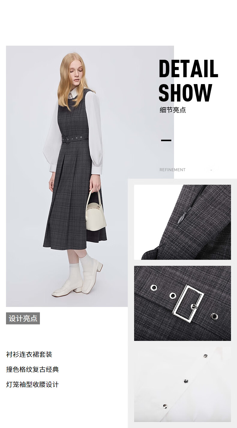 S.DEERsdeer women's 25-year new lapel plaid waist shirt dress suit S253Z1413 German gray 87 S 160