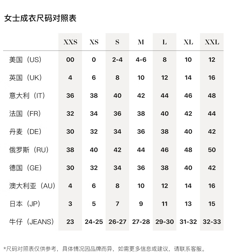 China (cm) 160-165/84-86 165-170 / 88-90 167-172 / 92-96 168-173 / 98-102 170-176 / 106-110
