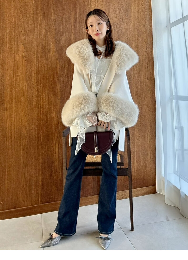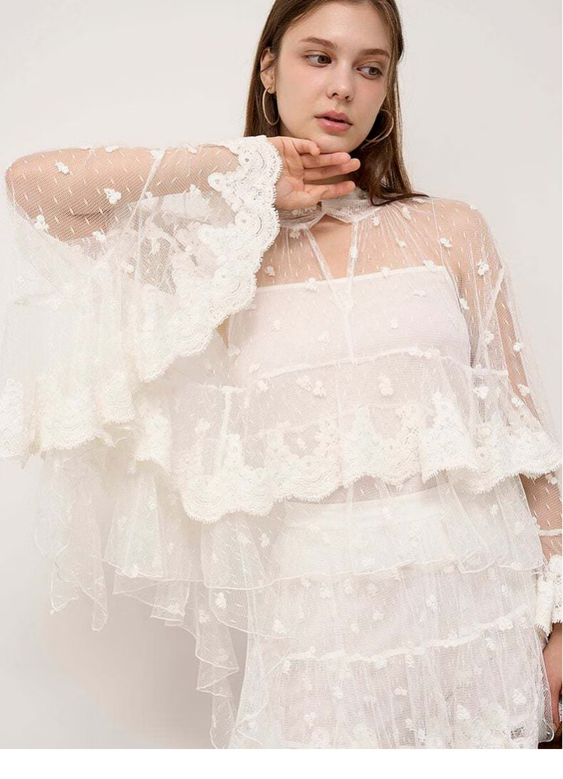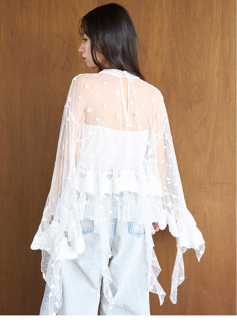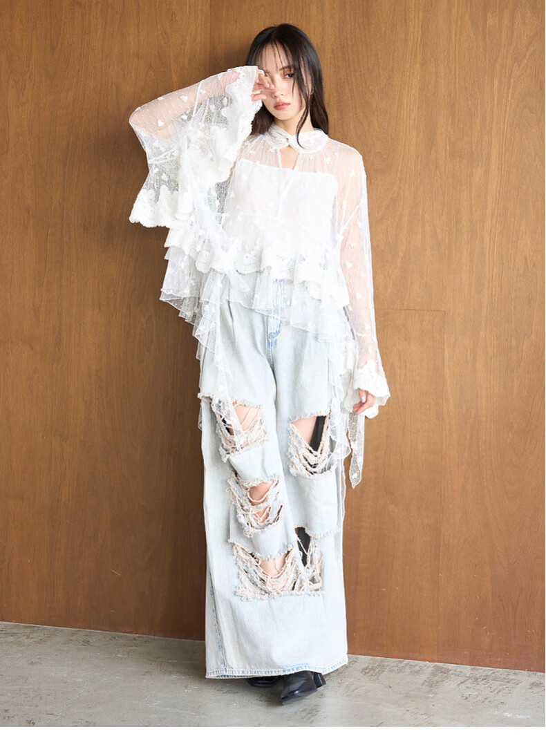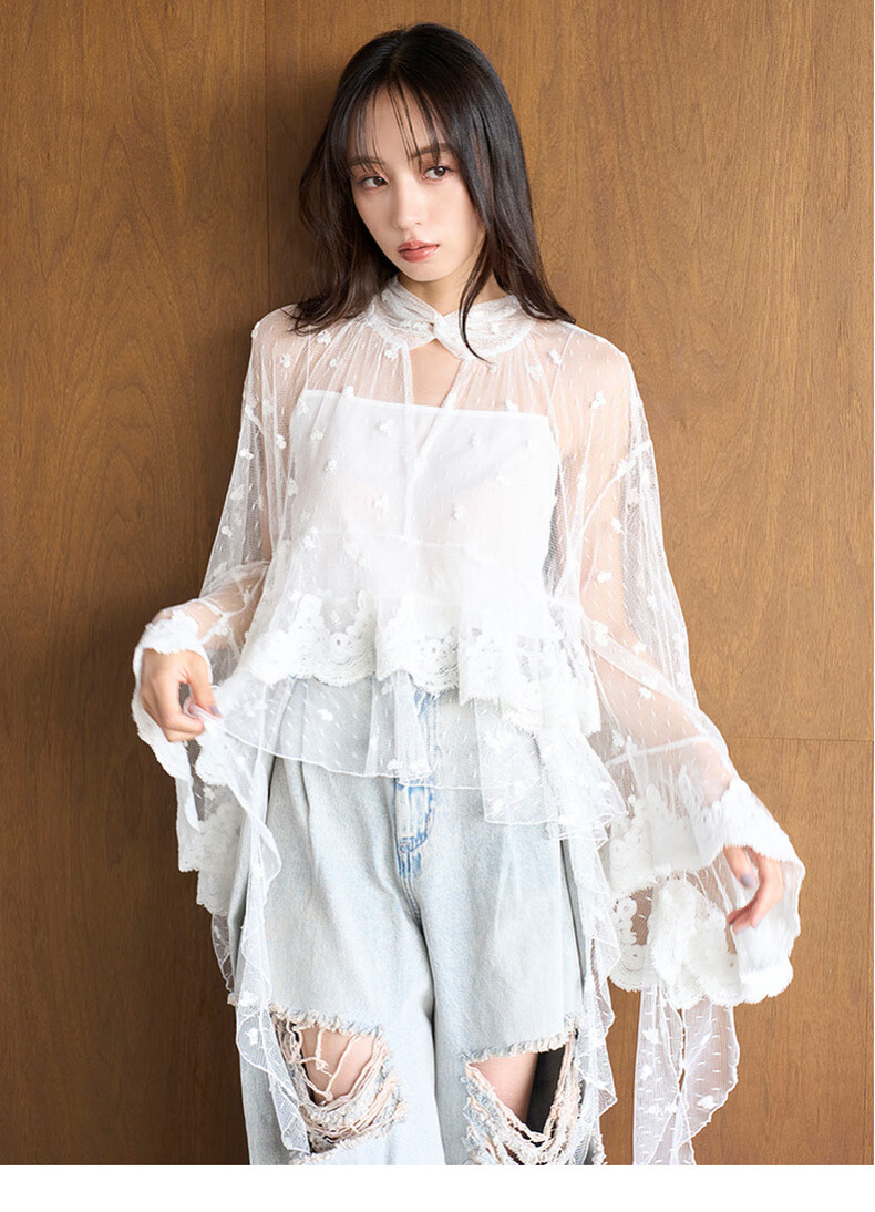 SNIDEL2025 new autumn and winter elegant jacquard lace embroidered ruffle bell sleeve shirt SWFB255147 flower pattern one size fits all (F)