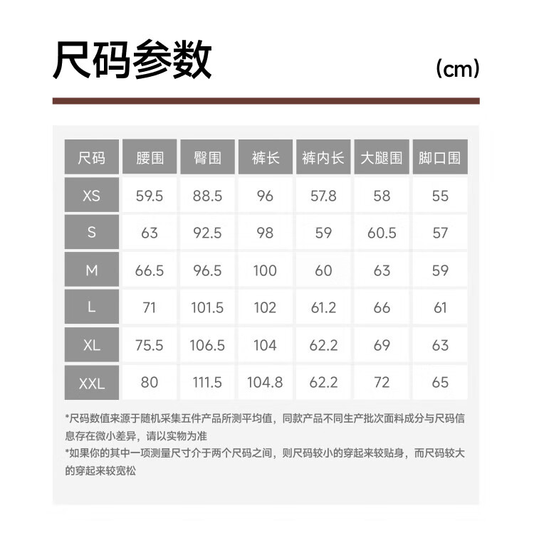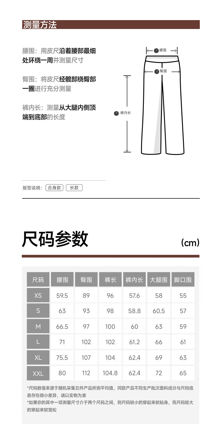 Outseam (cm) 99 cm 101.5 cm 104 cm 106.5 cm 109 cm
